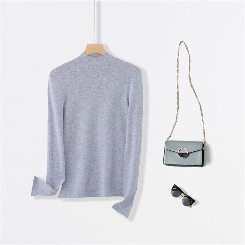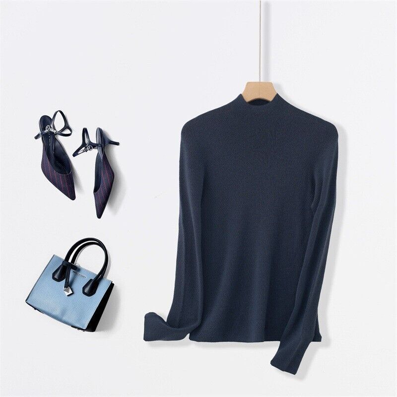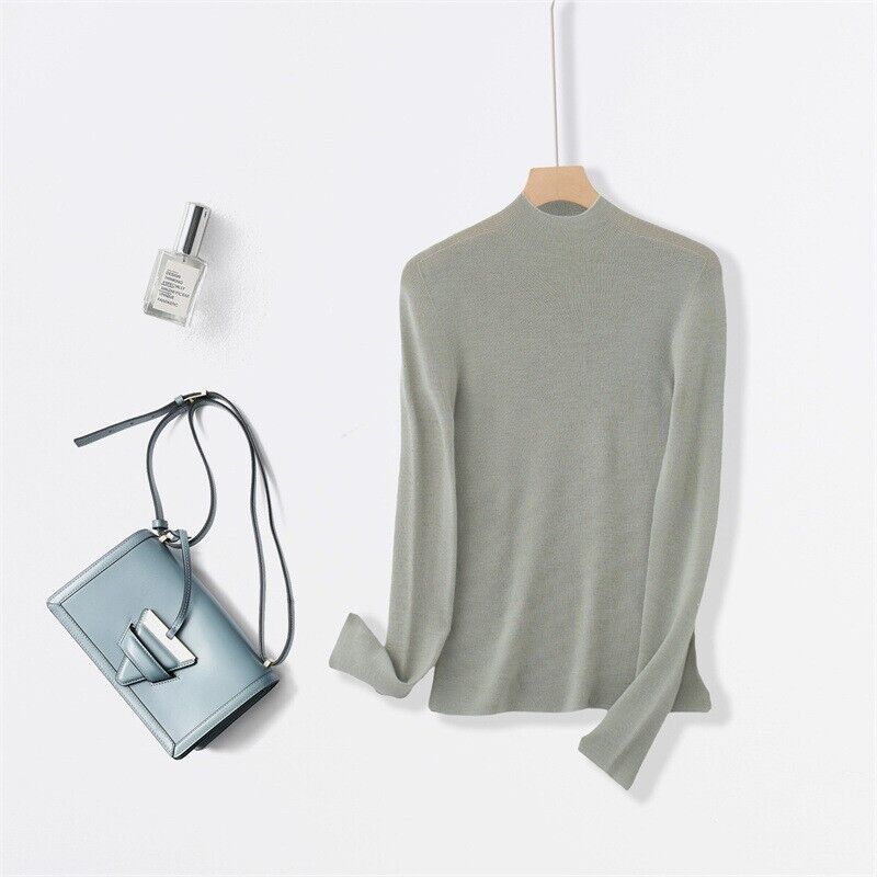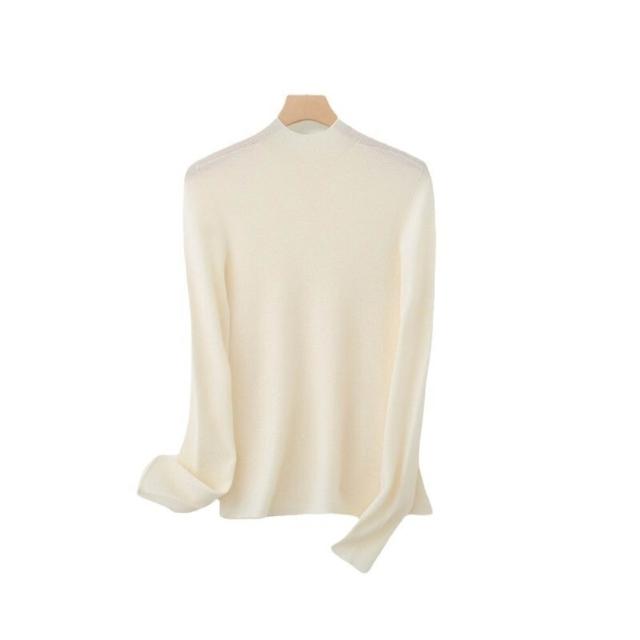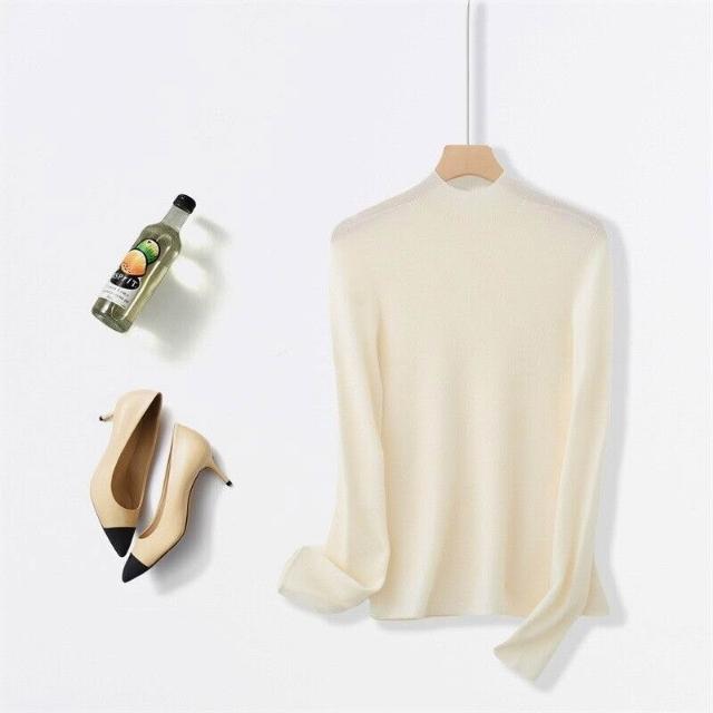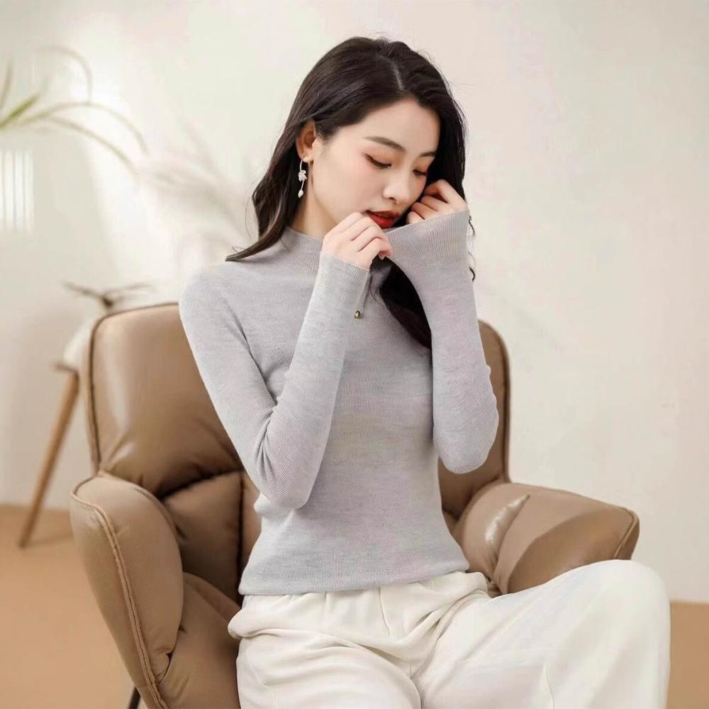 全臺热销🔥 揚子紗無縫一體毛衣半高領長袖羊毛衫女100純羊毛機洗針織打底衫 (針織衫/女上衣/針織上衣/長袖上衣/長袖針織衫)