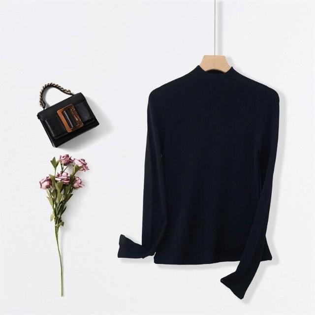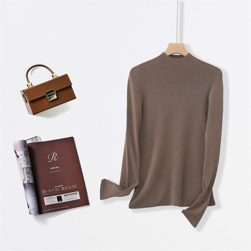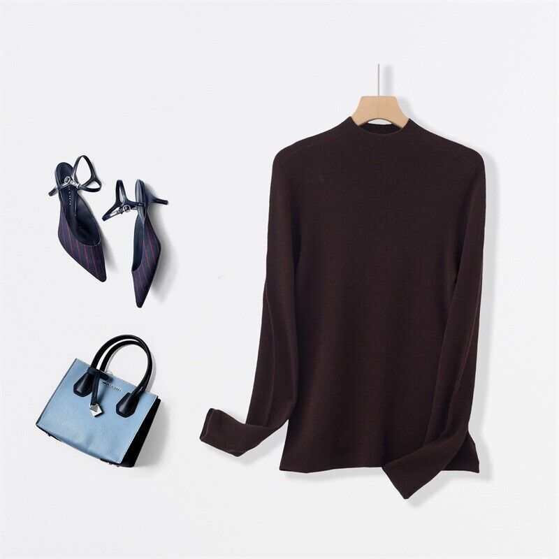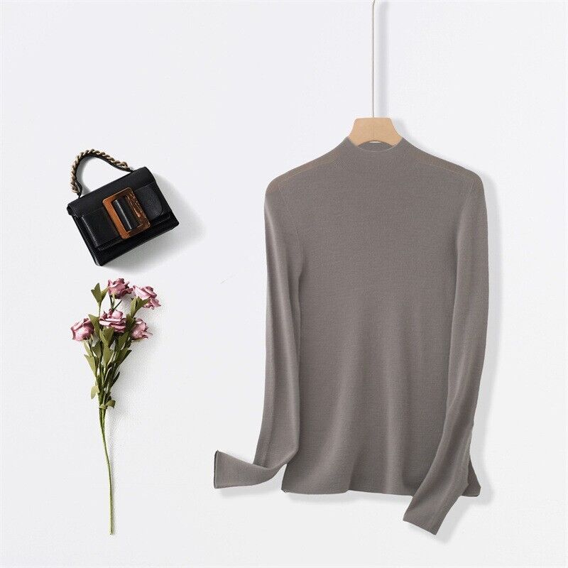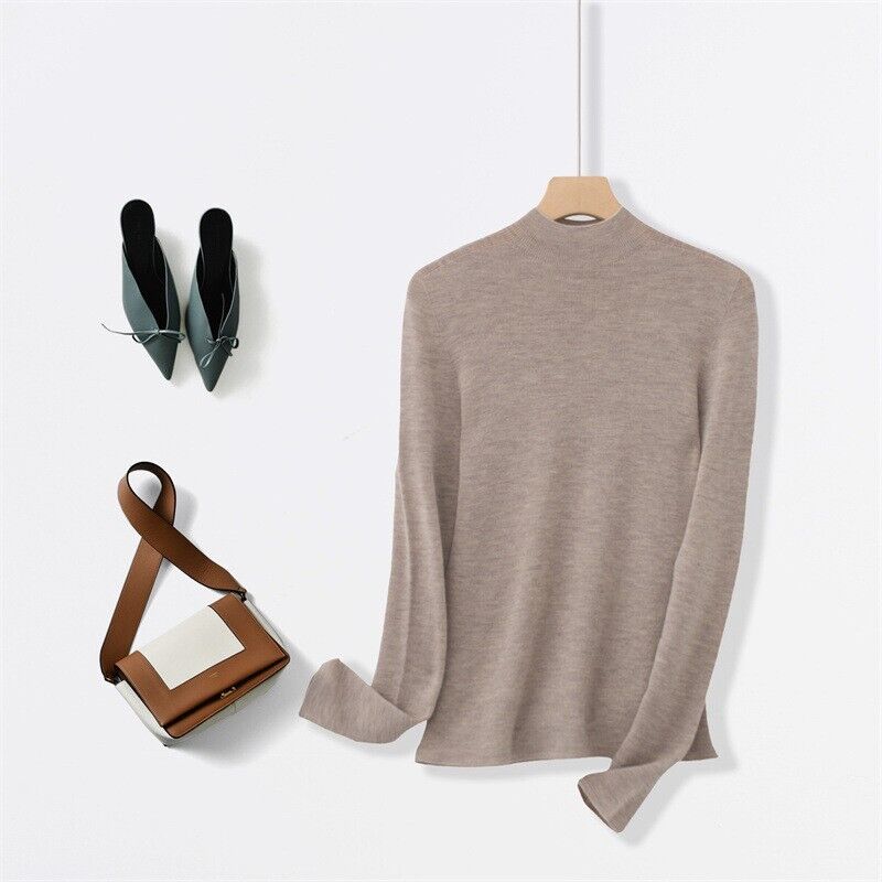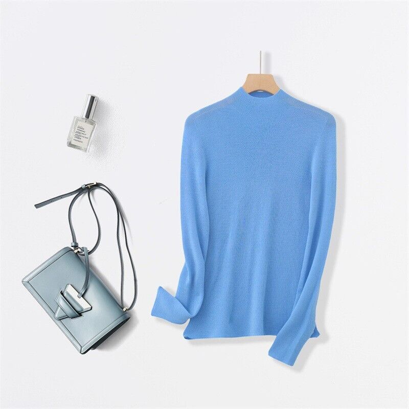 全臺热销🔥 揚子紗無縫一體毛衣半高領長袖羊毛衫女100純羊毛機洗針織打底衫 (針織衫/女上衣/針織上衣/長袖上衣/長袖針織衫)