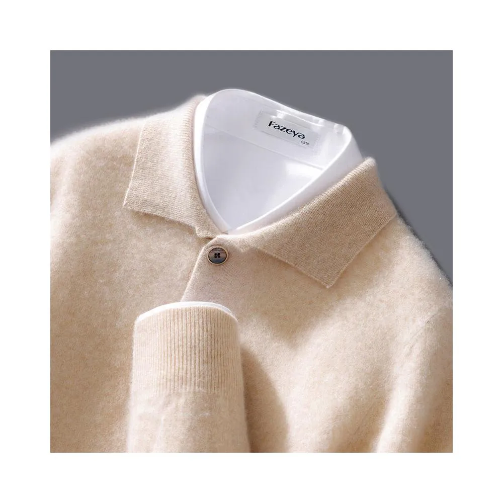 全臺热销🔥 polo領羊毛衫男秋冬新款純色商務羊絨針織打底衫百搭保暖套頭毛衣 (羊毛針織衫/長袖/羊絨針織衫/針織毛衣/長袖毛衣/男上衣)