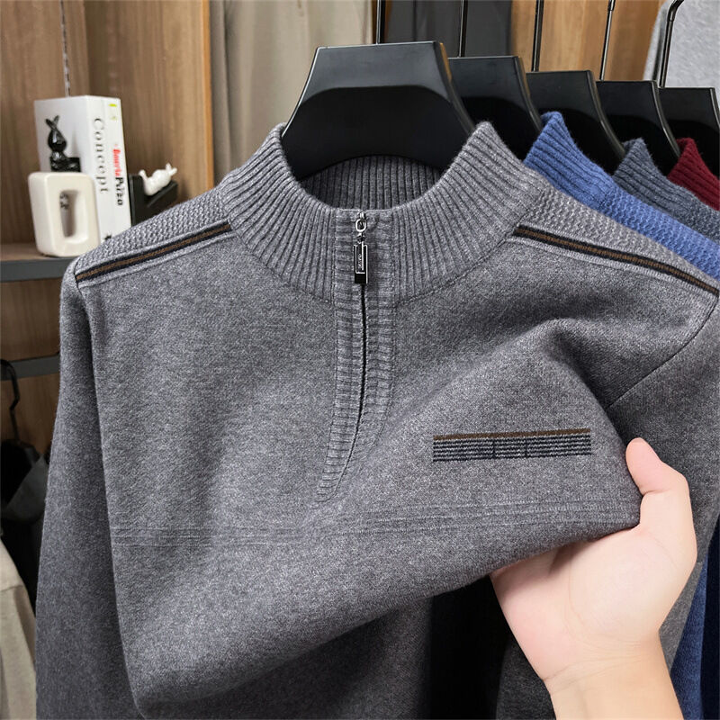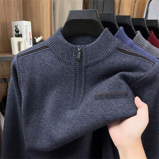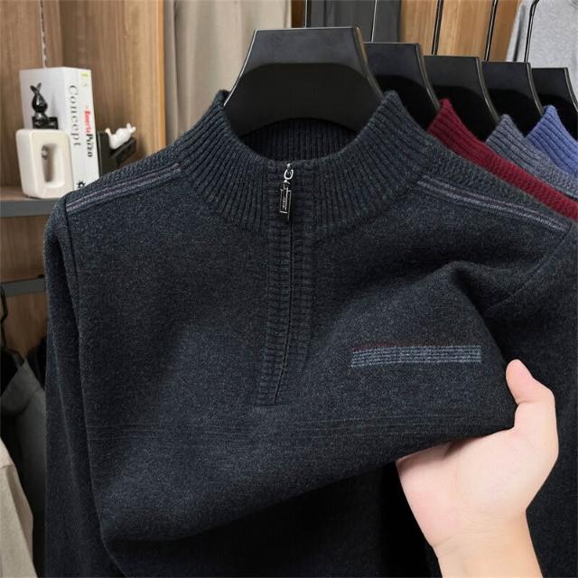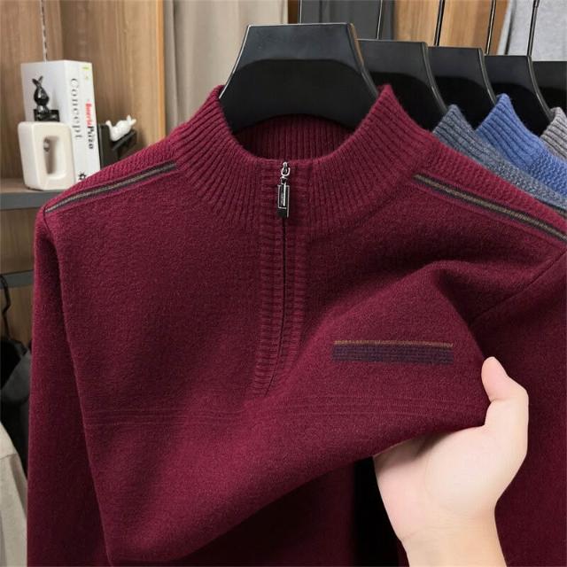 全臺热销🔥 羊毛衫男加厚冬季中年男士半高拉鏈領休閑高檔保暖針織打底毛衣男 (羊毛針織衫/長袖/羊絨針織衫/針織毛衣/長袖毛衣/男上衣)