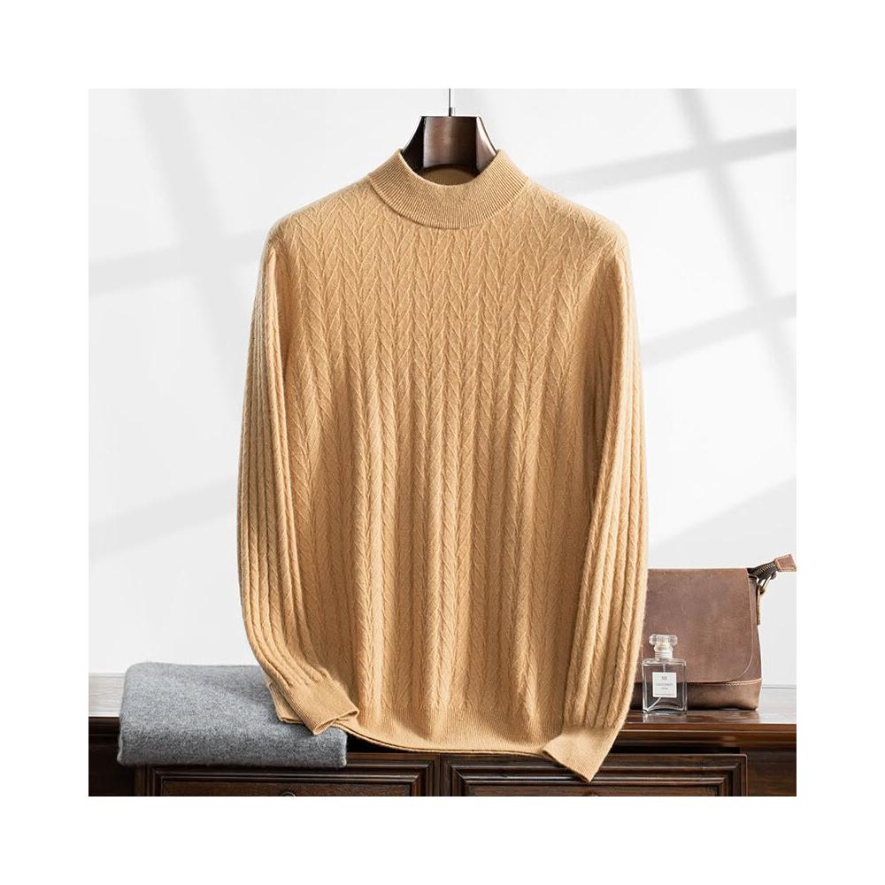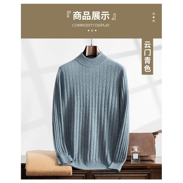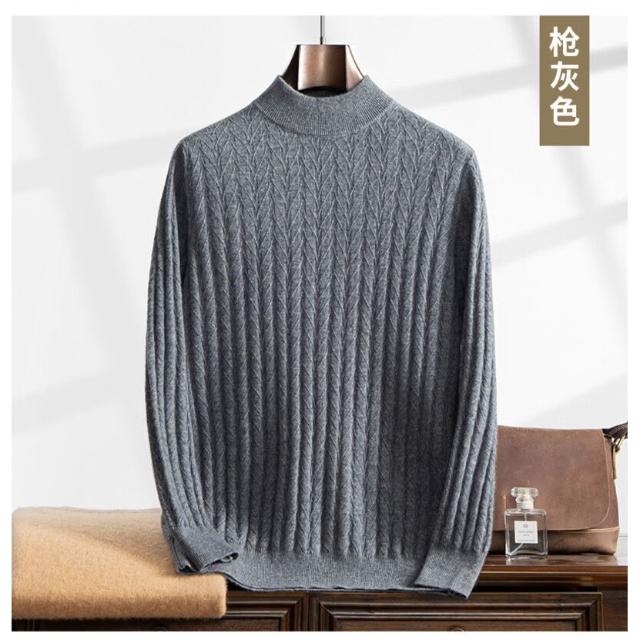 全臺热销🔥 加厚麥穗提花山羊絨衫男士半高領純色內搭休閑羊毛毛衣打底衫代發 (羊毛針織衫/長袖/羊絨針織衫/針織毛衣/長袖毛衣/男上衣)