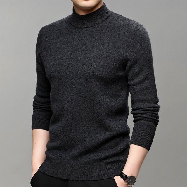 全臺热销🔥 男士100純羊毛衫純色圓領打底衫加厚半高領針織毛衣休閑百搭男裝 (羊毛針織衫/長袖/羊絨針織衫/針織毛衣/長袖毛衣/男上衣)