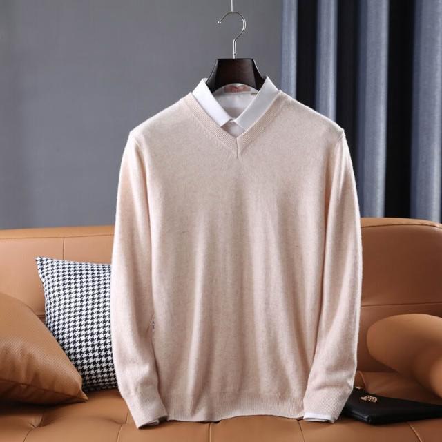全臺热销🔥 男士V領羊絨衫中青年100純羊毛冬季加厚針織衫寬松打底爸爸毛衣男 (羊毛針織衫/長袖/羊絨針織衫/針織毛衣/長袖毛衣/男上衣)