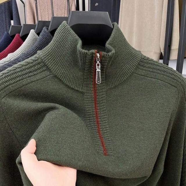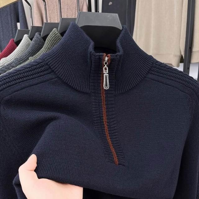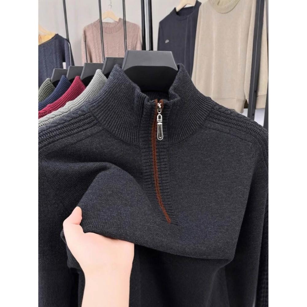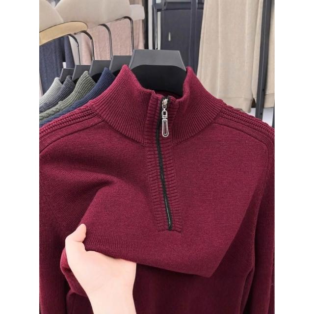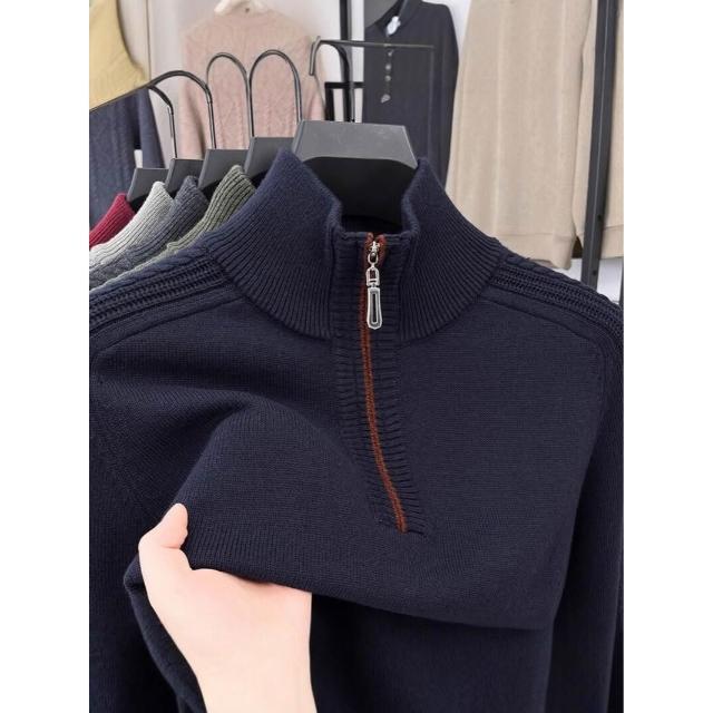 全臺热销🔥 冬季新款高檔含羊毛衫男士毛衣加厚保暖中年半高領針織打底衫上衣 (羊毛針織衫/長袖/羊絨針織衫/針織毛衣/長袖毛衣/男上衣)