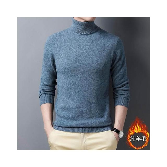 热销🔥 純羊毛衣針織打底衫可翻高領輕柔保暖商務裝 羊毛針織衫 長袖 羊絨針織衫 針織毛衣 長袖毛衣 男上衣