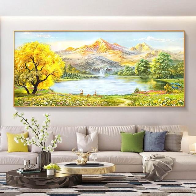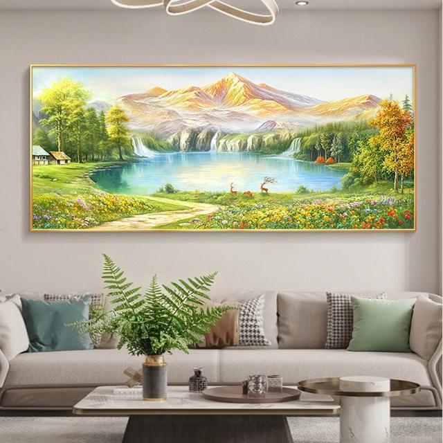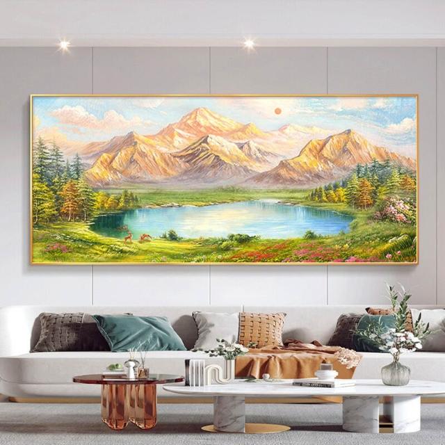 XUYU全臺热销🔥 手繪油畫日照金山風景印象油畫客廳裝飾畫現代簡約玄關純藝術掛畫 (裝飾畫 高級掛畫 油畫 高級感璧畫 壁畫)