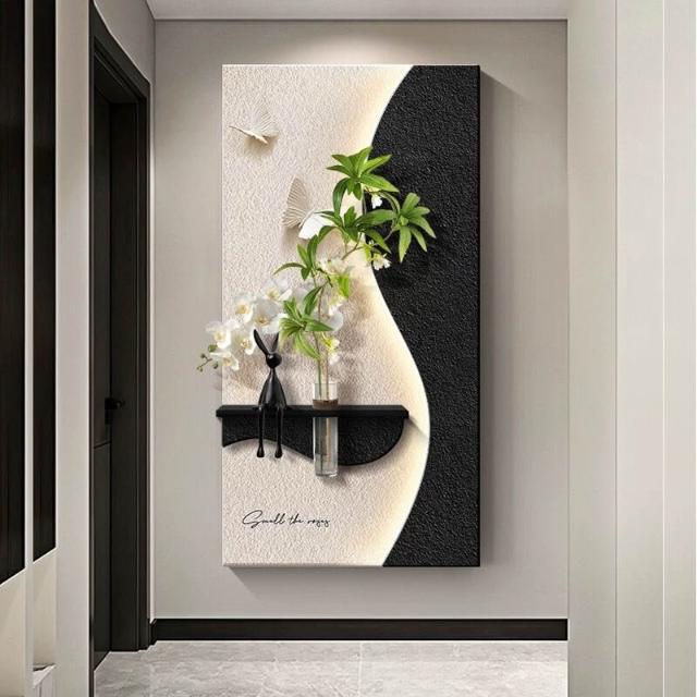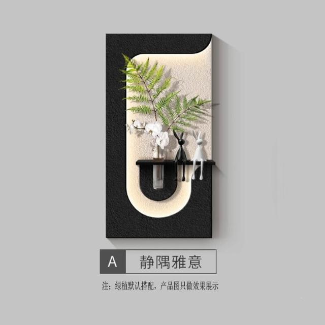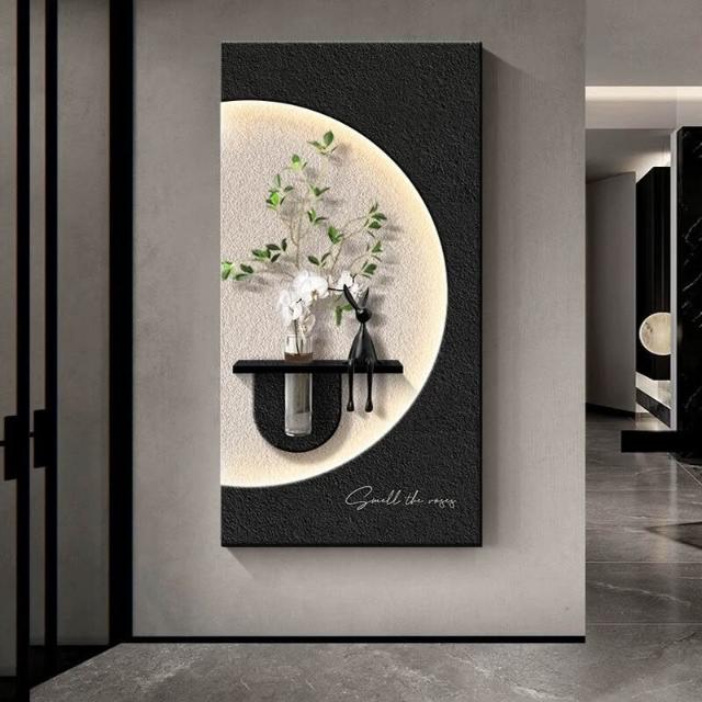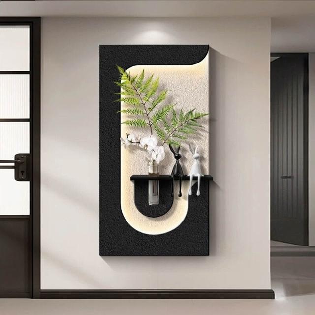 XUYU全臺热销🔥 砂巖雙層簡約水培綠植入戶門玄關裝飾畫走廊過道掛畫帶燈光壁燈畫 (裝飾畫 高級掛畫 油畫 高級感璧畫 壁畫)