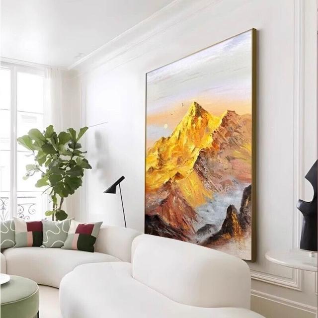 絮語精品裝飾畫 高級掛畫 油畫 高級感璧畫 壁畫 純手繪油畫《日照金山》沙發背景墻客廳裝飾畫玄關抽象風景肌理畫