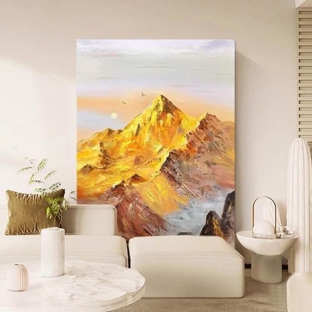 絮語精品裝飾畫 高級掛畫 油畫 高級感璧畫 壁畫 純手繪油畫《日照金山》沙發背景墻客廳裝飾畫玄關抽象風景肌理畫