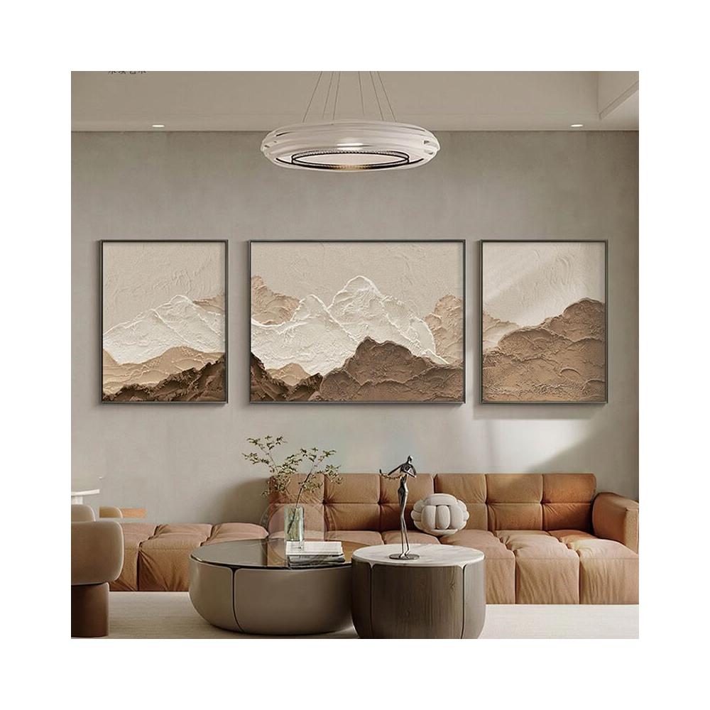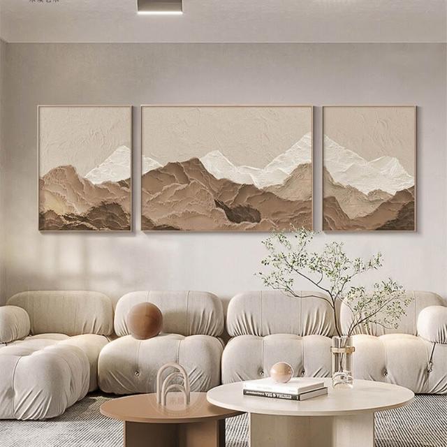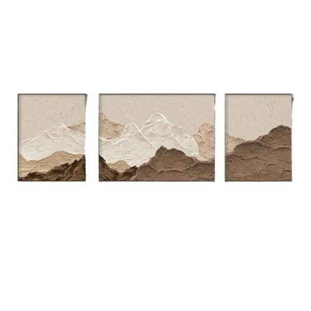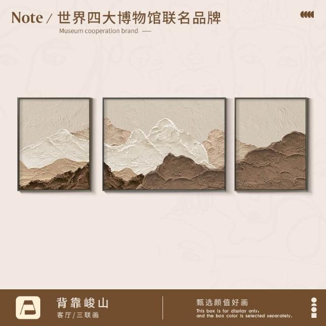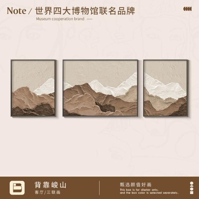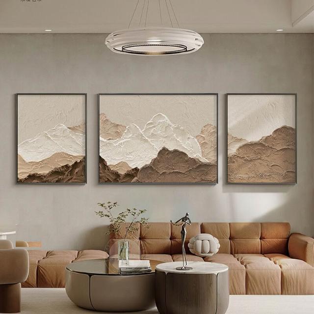 XUYU全臺热销🔥 侘寂原木風客廳裝飾畫高級感大氣三聯沙發背景墻掛畫抽象藝術壁畫 (裝飾畫 高級掛畫 油畫 高級感璧畫 壁畫)