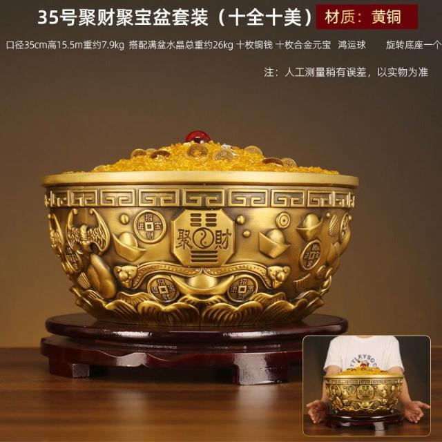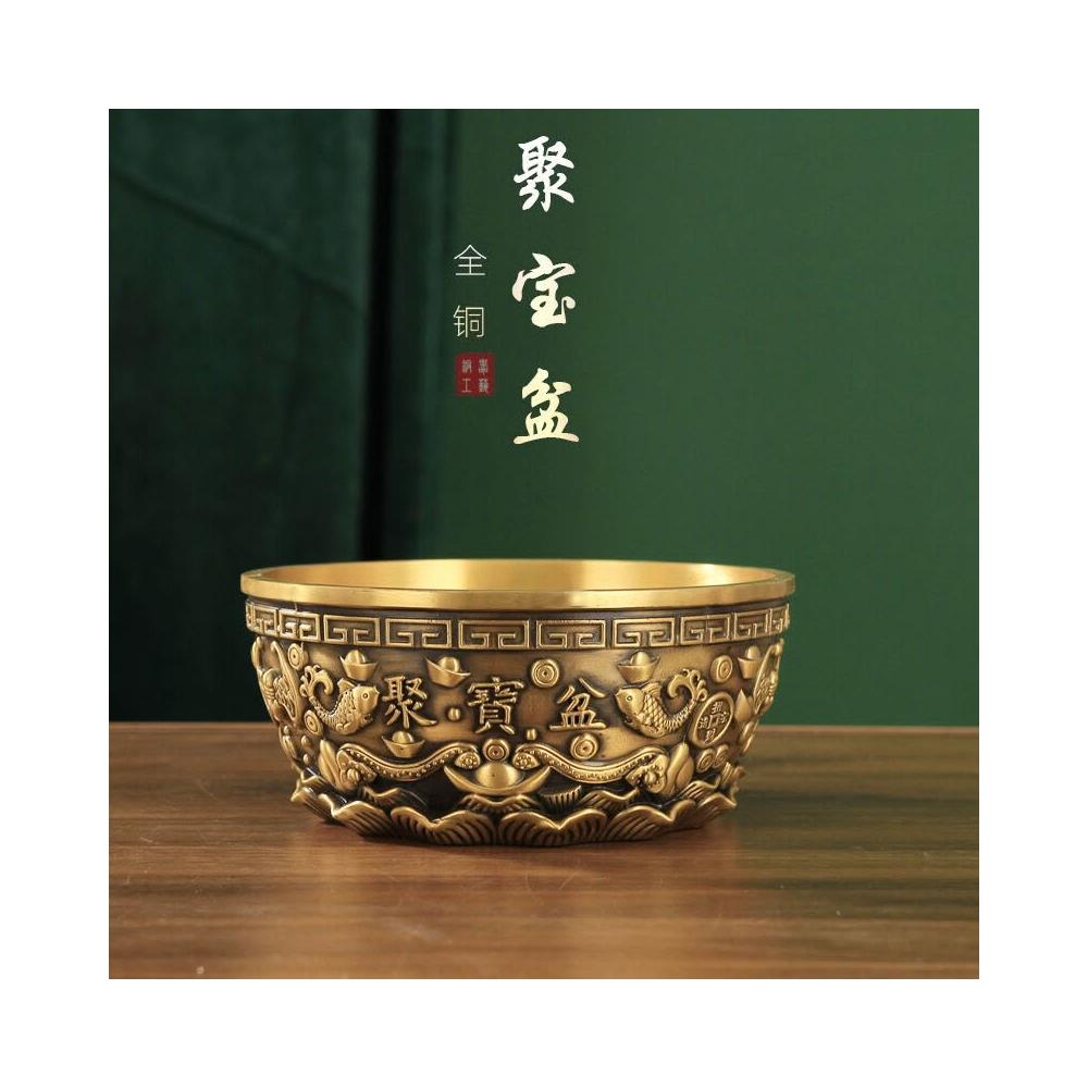 XUYU全臺热销🔥 批聚寶盆擺件黃純家用客廳裝飾招聚銅製品工藝品財存錢罐銅器黃銅 (桌上擺飾 新居禮物 家居裝飾 裝飾品)