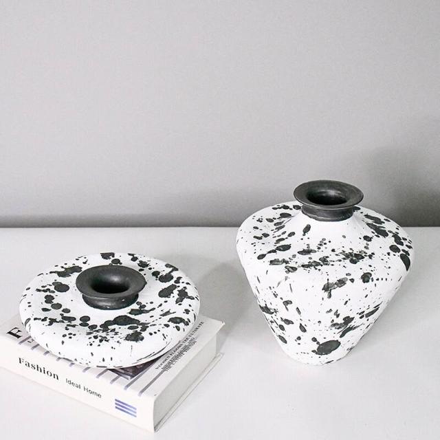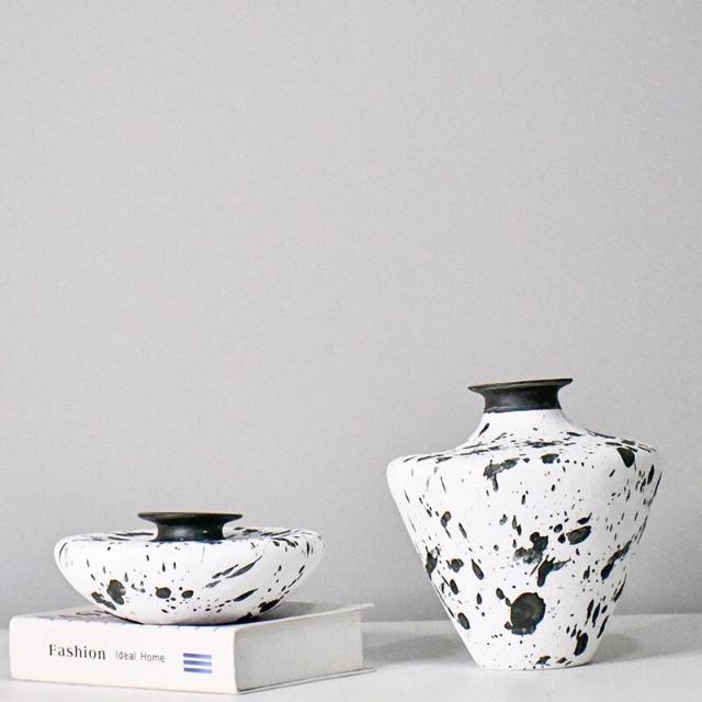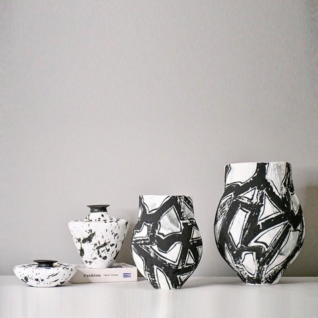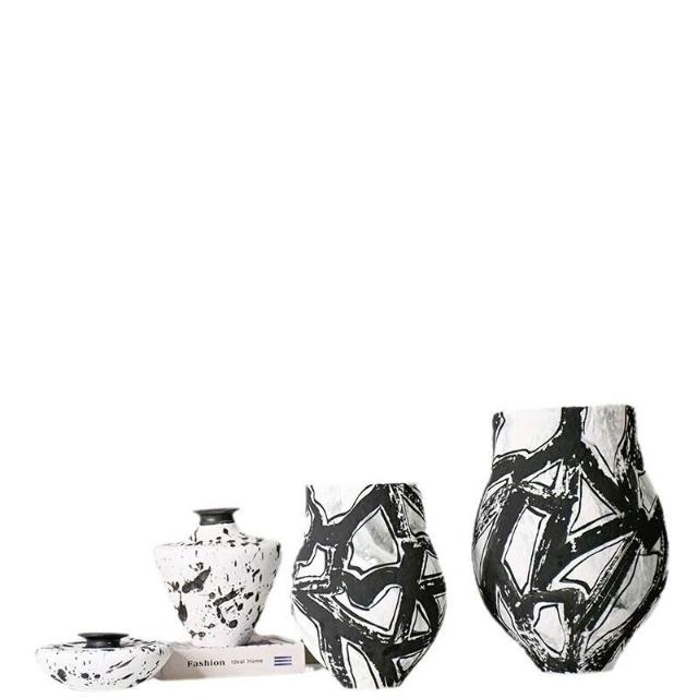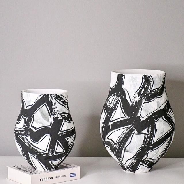XUYU全臺热销🔥 黑白手繪創意陶瓷花器現代中式家居酒店民宿玄關背景裝飾花瓶插花 (桌上擺飾 新居禮物 家居裝飾 裝飾品)