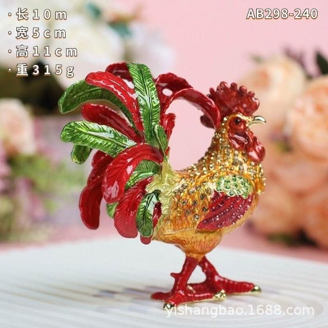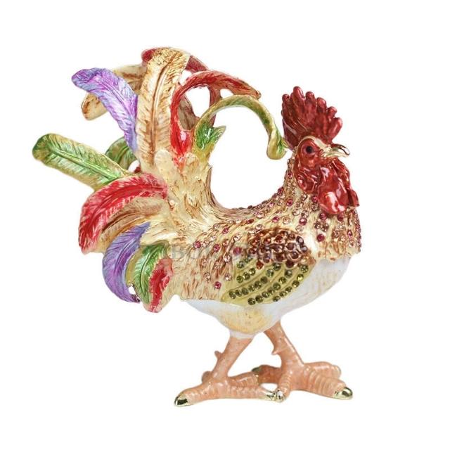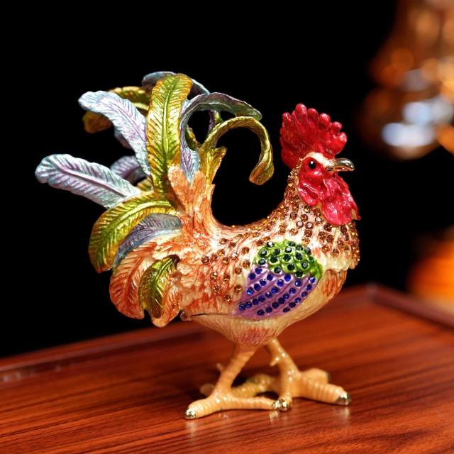 XUYU全臺热销🔥 金屬琺瑯首飾盒七寶燒手工藝品家居飾品中式鳳尾公雞招財擺件禮品 (桌上擺飾 新居禮物 家居裝飾 裝飾品)