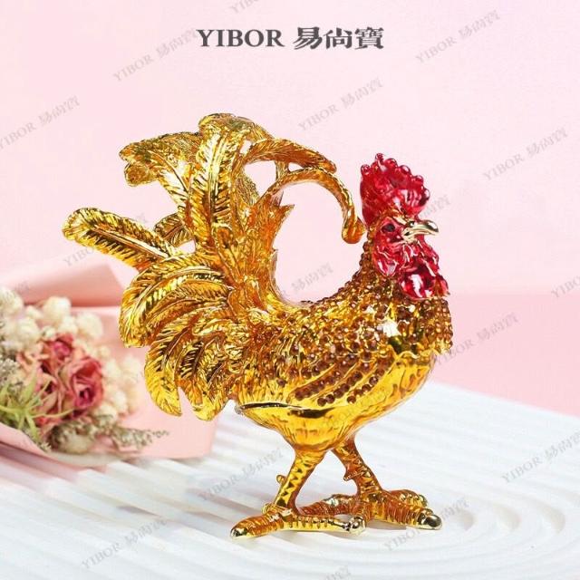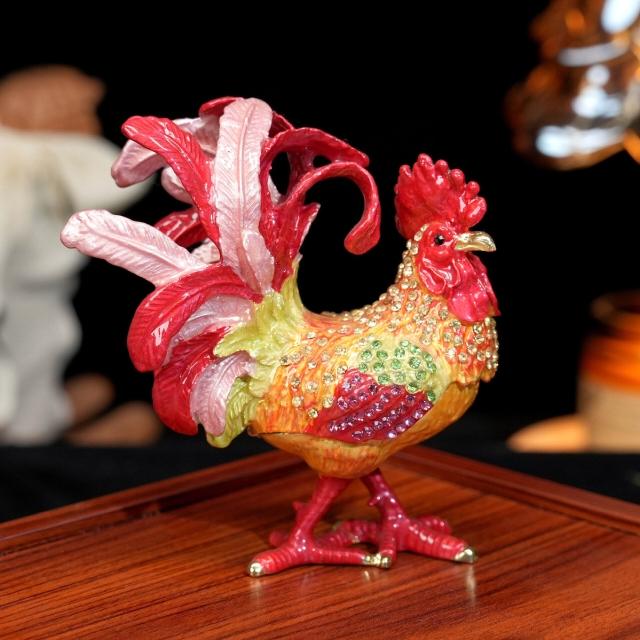 XUYU全臺热销🔥 金屬琺瑯首飾盒七寶燒手工藝品家居飾品中式鳳尾公雞招財擺件禮品 (桌上擺飾 新居禮物 家居裝飾 裝飾品)