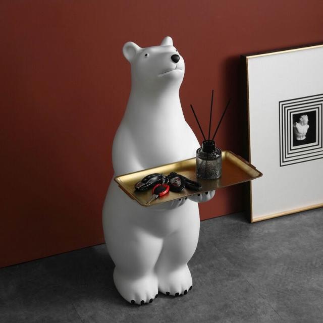 XUYU全臺热销🔥 創意北極熊落地擺件大型動物收納托盤客廳玄關家居裝飾品喬遷禮物 (桌上擺飾 新居禮物 家居裝飾 裝飾品)