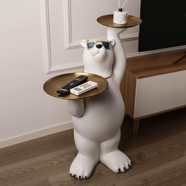 XUYU全臺热销🔥 創意大型北極熊落地擺件客廳沙發旁托盤收納家居裝飾喬遷新居禮品 (桌上擺飾 新居禮物 家居裝飾 裝飾品)