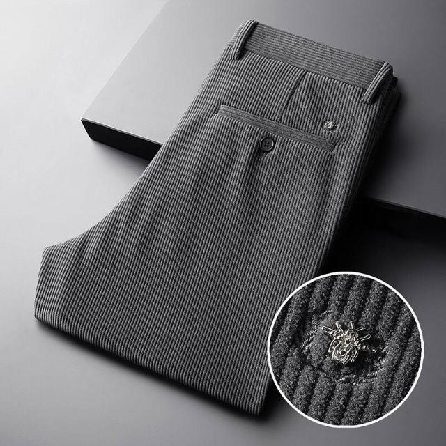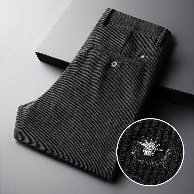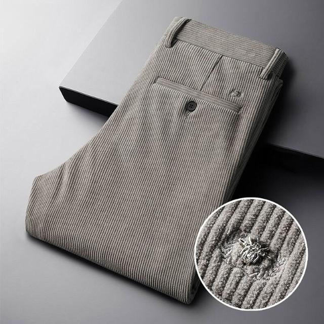 全臺热销🔥 輕奢燈芯絨男褲秋冬季2024新款親膚條絨褲刺繡免燙直筒商務休閑褲 (燈芯絨褲 男長褲 西褲 休閒褲 工作褲)