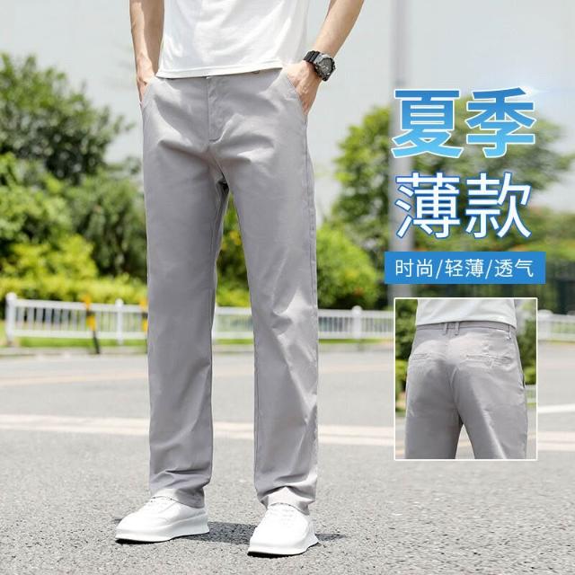 全臺热销🔥 純棉薄款彈力男士輕奢休閑褲直筒合體輕商務時尚百搭休閑修身長褲 (商務休閒褲 西裝褲 商務長褲 男長褲)