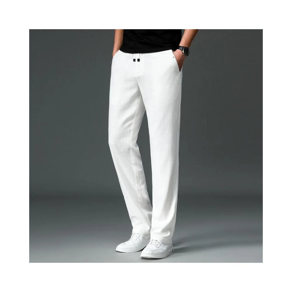 商務休閒褲 西裝褲 商務長褲 男長褲 春夏薄款高端白色亞麻休閑褲男寬松直筒松緊彈力棉麻透氣運動長褲