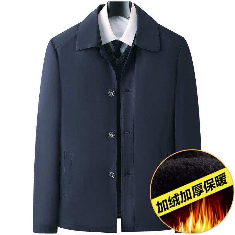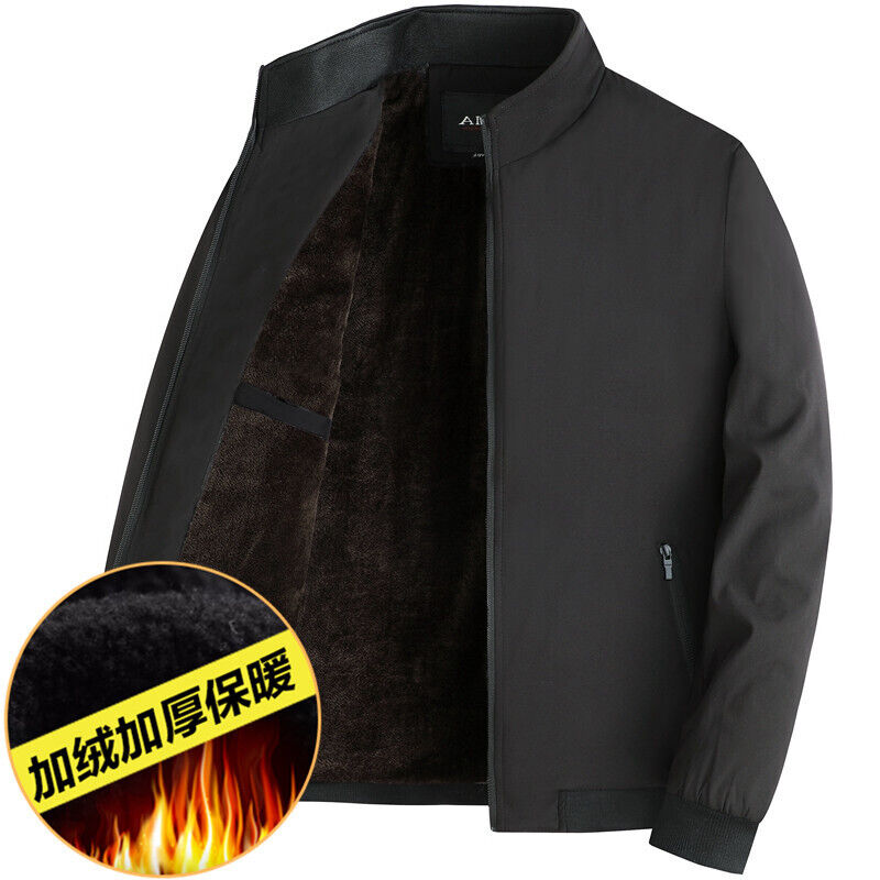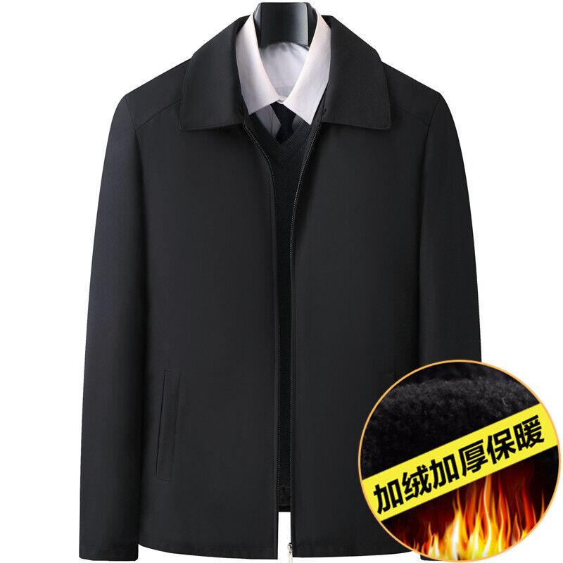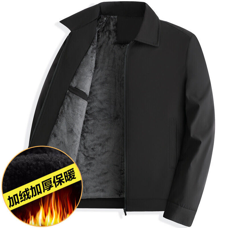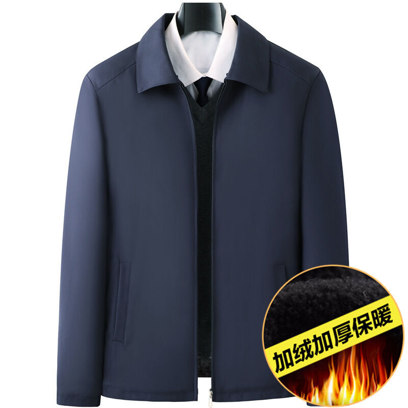 全臺热销🔥 中年爸爸春秋裝外套加絨加厚中老年人男士翻領商務休閑行政夾克衫 (商务外套 夹克外套 商务休闲外套 经典外套)