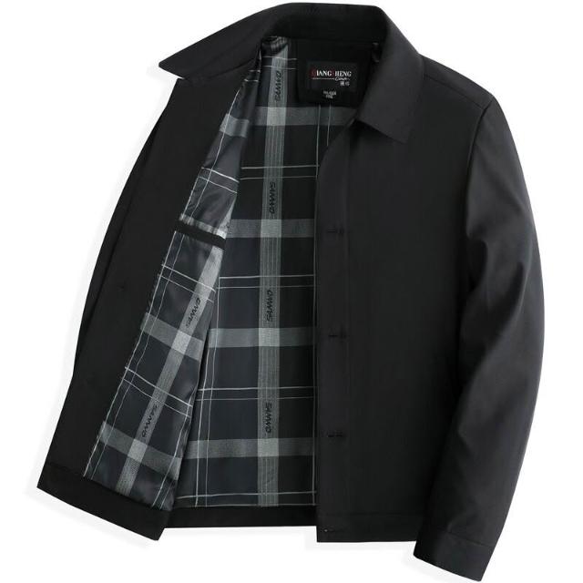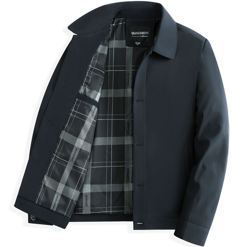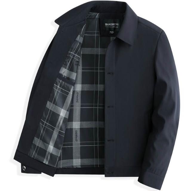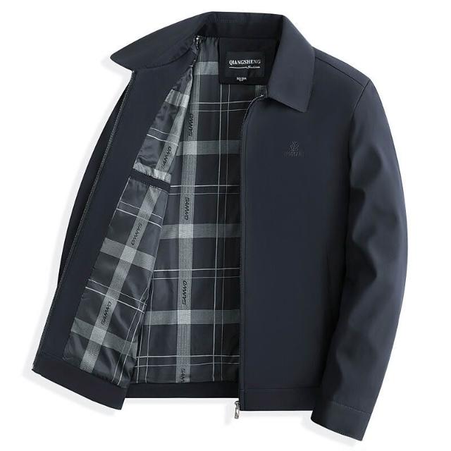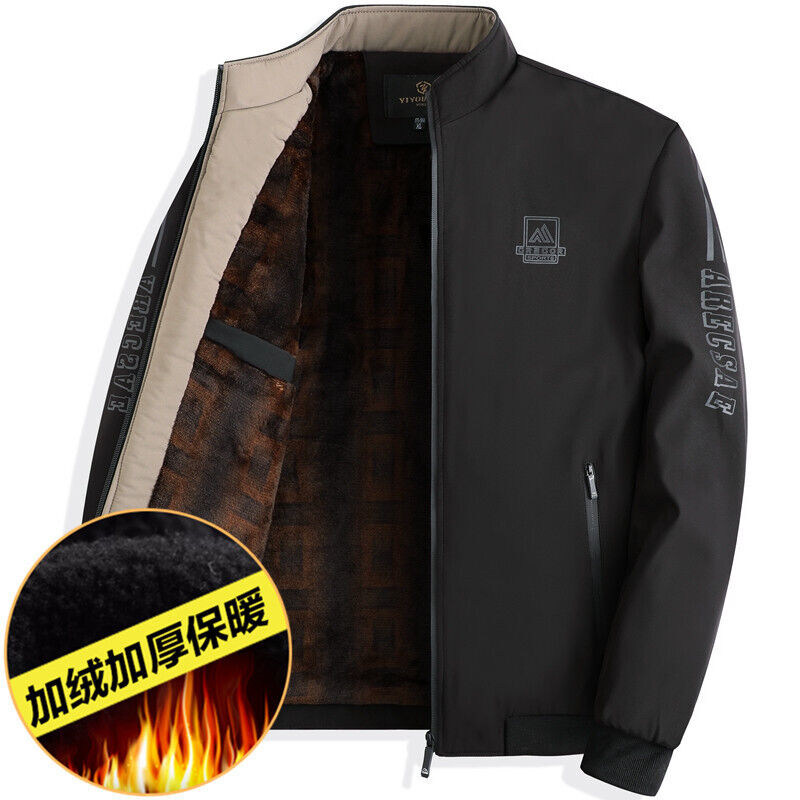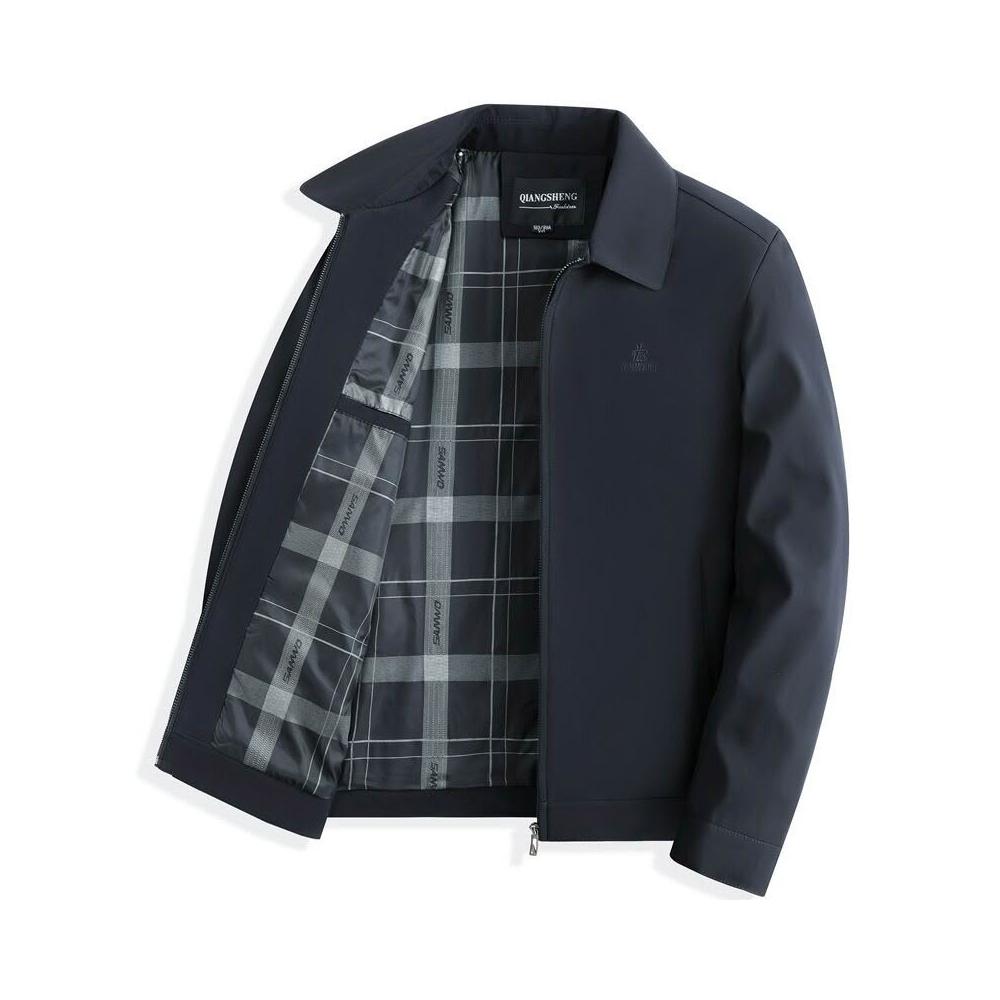 全臺热销🔥 中年爸爸春秋裝外套加絨加厚中老年人男士翻領商務休閑行政夾克衫 (商务外套 夹克外套 商务休闲外套 经典外套)