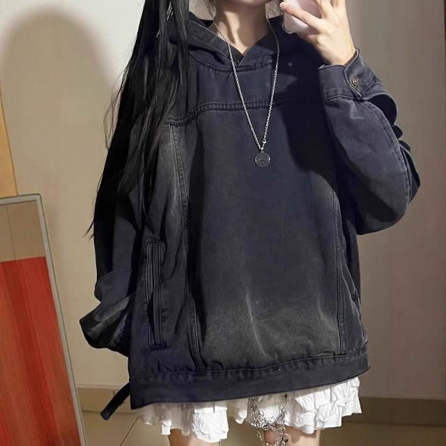 全臺热销🔥 美式復古連帽牛仔外套男秋冬季款重磅水洗衛衣oversize潮牌夾克潮 (連帽外套 外套 飛行夾克 休閒外套 男上衣)