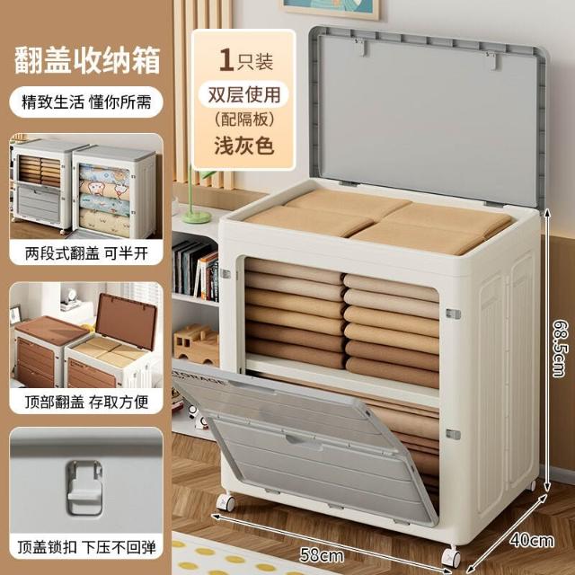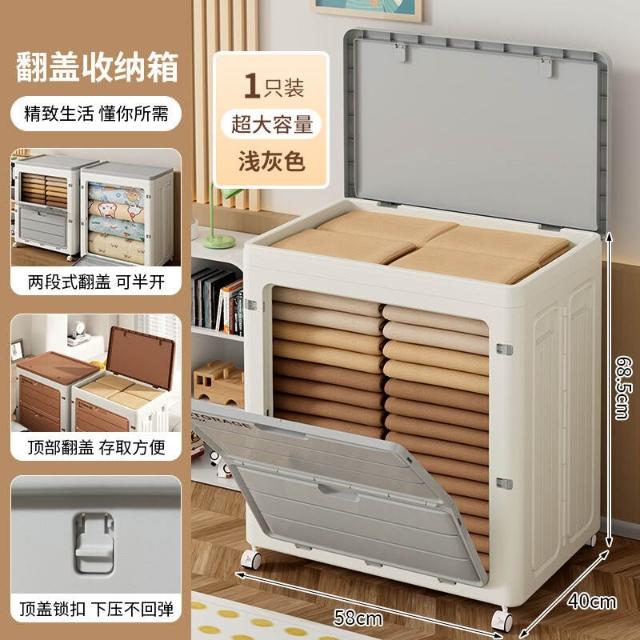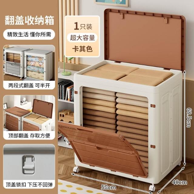XUYU全臺热销🔥 帶輪收納箱整理箱大容量衣物收納超大家用翻蓋折疊換季衣服儲物箱 (收納箱 折疊收納 整理箱 置物箱 收納櫃)