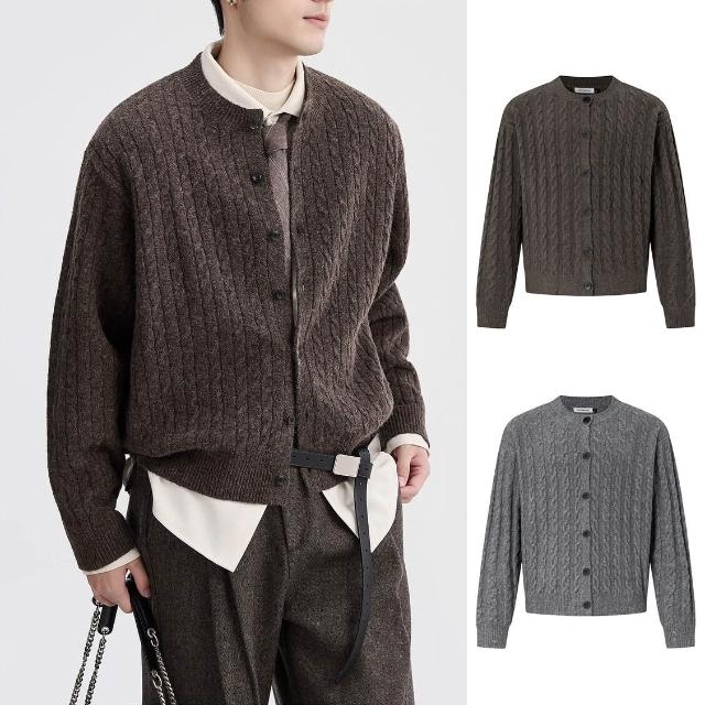 絮語精品主推熱銷🔥 老錢風麻花擰繩針織衫毛衣男開衫外套高級感商務秋冬外貿跨境批發 (針織外套 針織上衣 針織長袖 針織開衫 羊毛開衫)