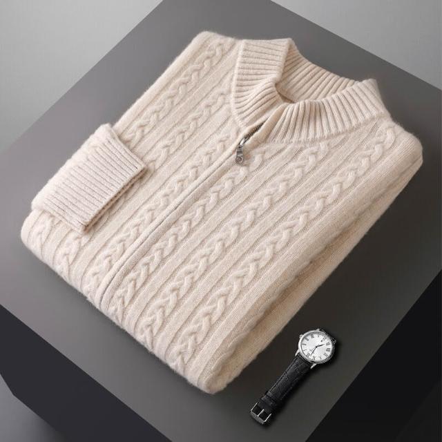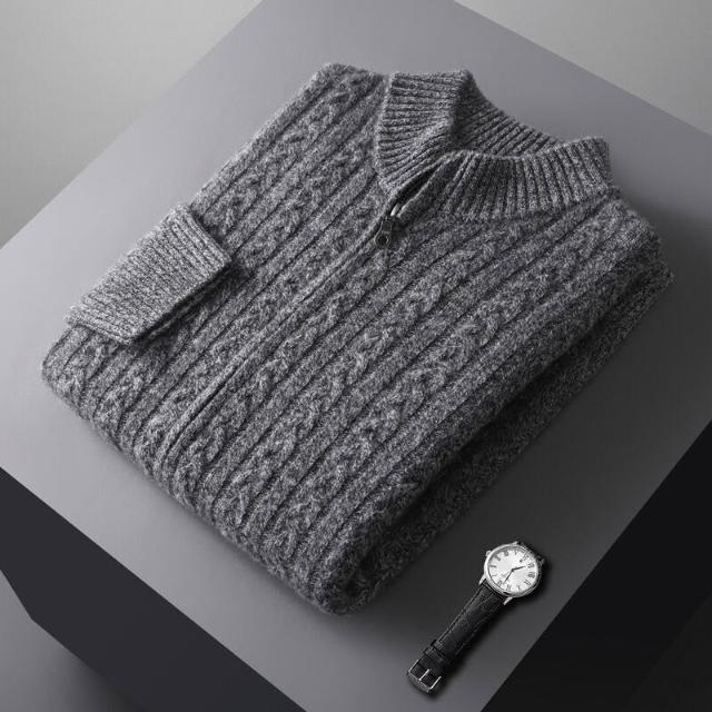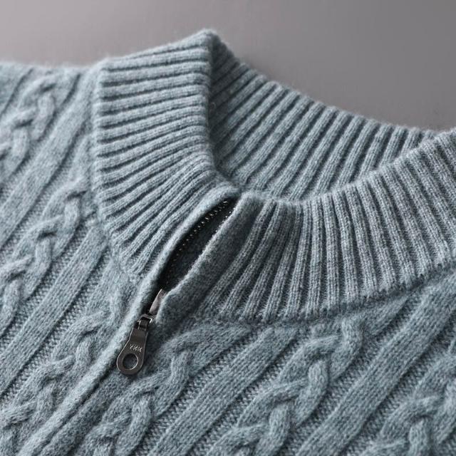 絮語精品主推熱銷🔥 羊毛衫男士半高領拉鏈開衫100純羊毛衫七針雙股加厚針織外套上衣 (針織外套 針織上衣 針織長袖 針織開衫 羊毛開衫)