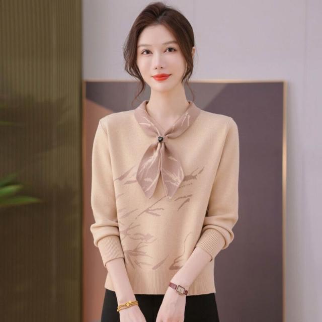 絮語精品熱銷🔥🔥 新款毛衣中老年春秋氣質長袖打底衫媽媽洋氣針織上衣中年女裝 (春秋針織衫 針織上衣 針織長袖 針織開衫 女士上衣 媽媽上衣)