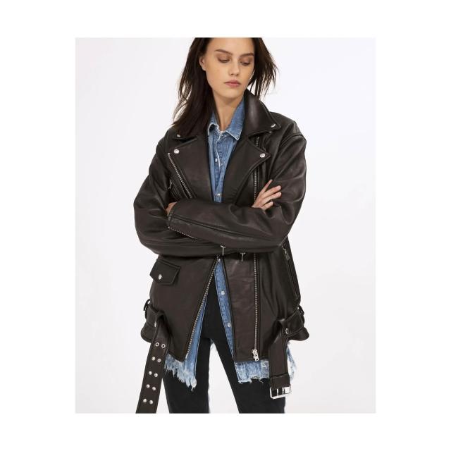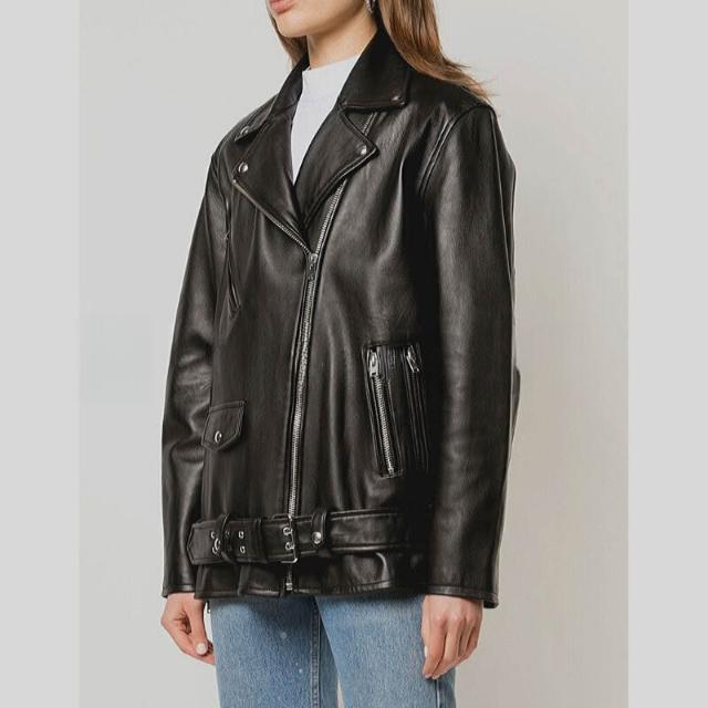 熱銷🔥🔥 皮衣女寬松廓形機車中長款歐美設計師秋冬夾克 (皮衣外套 皮夾克外套 皮外套 時尚皮夾克外套)
