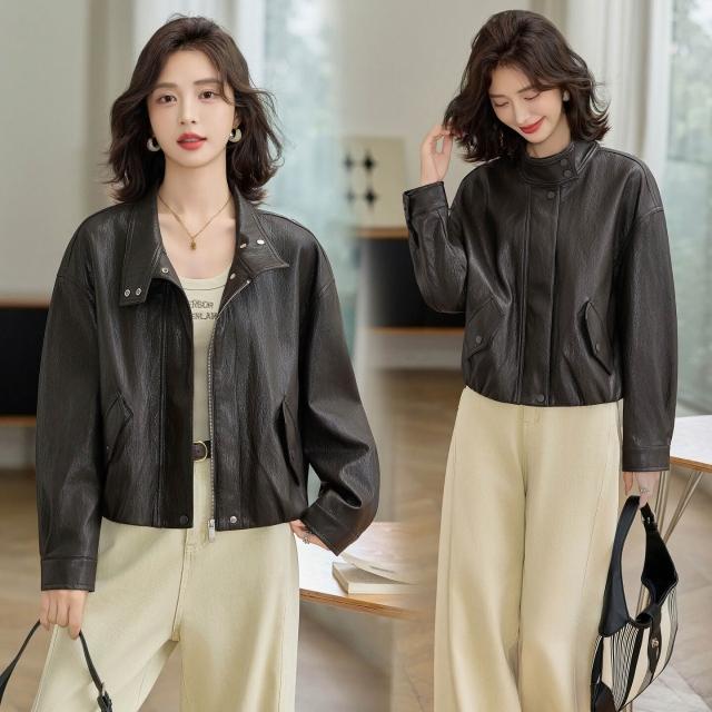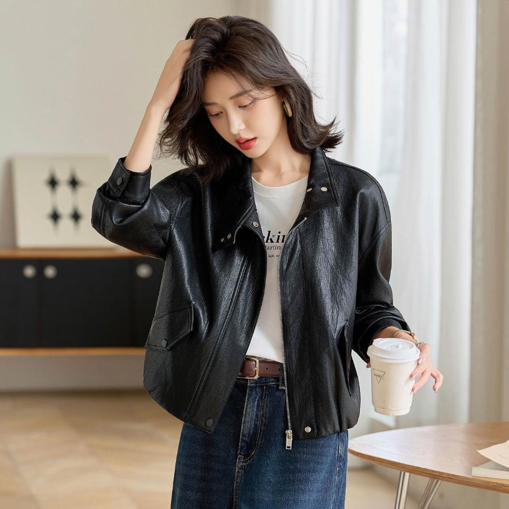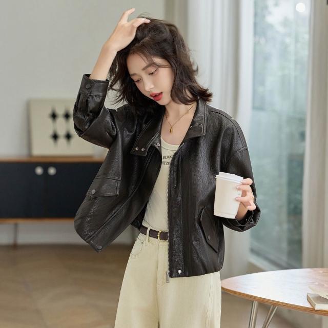 熱銷🔥🔥 高檔綿羊皮皮衣女新款時尚寬松翻領機車服女士設計感顯瘦外套 (皮衣外套 皮夾克外套 皮外套 時尚皮夾克外套)
