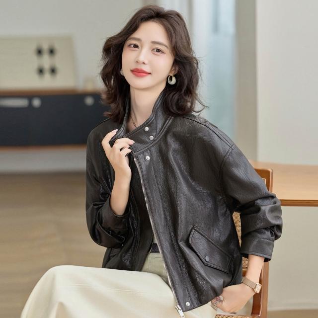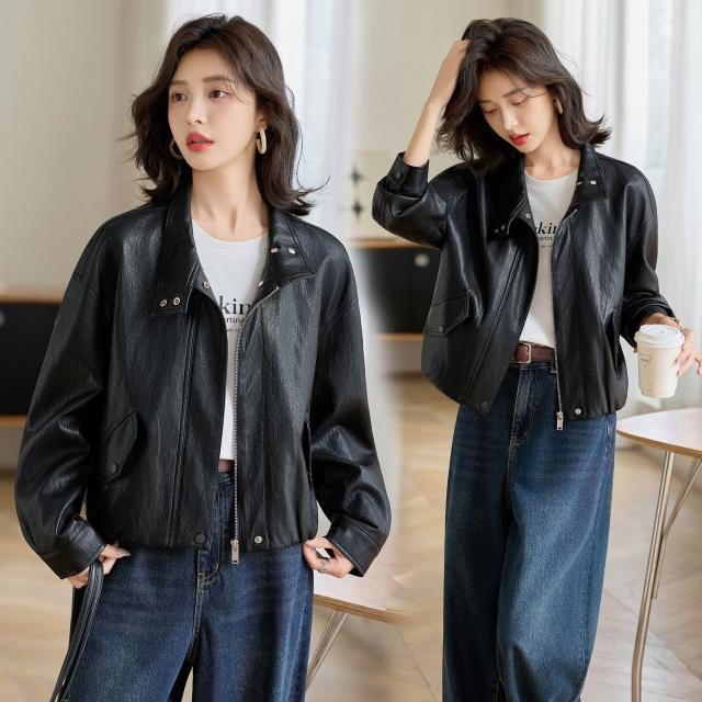 熱銷🔥🔥 高檔綿羊皮皮衣女新款時尚寬松翻領機車服女士設計感顯瘦外套 (皮衣外套 皮夾克外套 皮外套 時尚皮夾克外套)