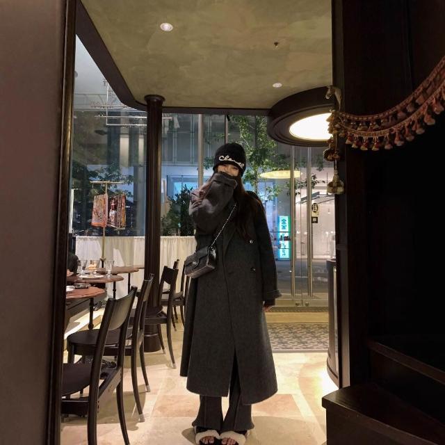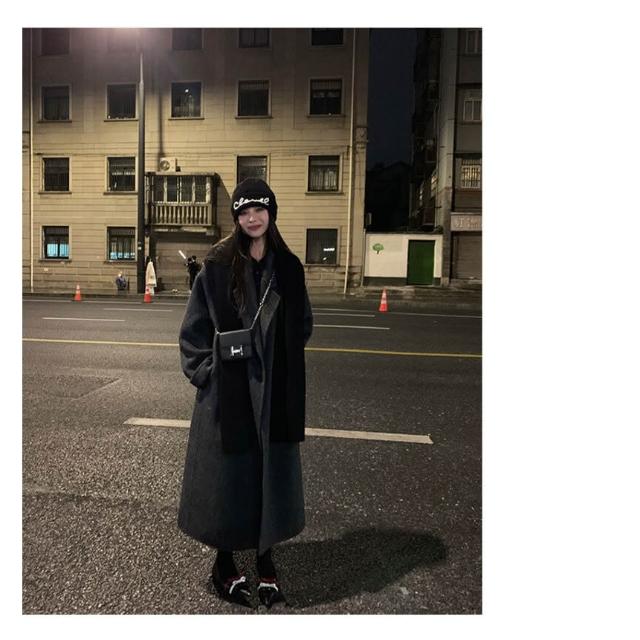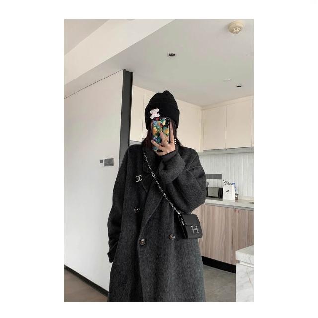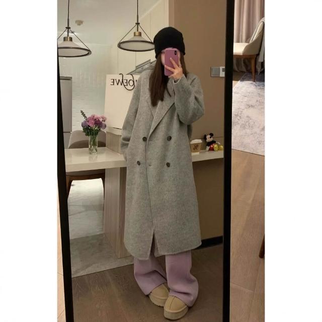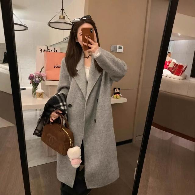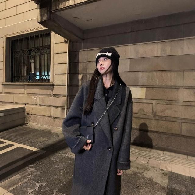爆款🔥🔥 雙面羊絨大衣女黑灰色秋冬新款中長款羊毛呢子韓版寬松女外套 (高級大衣 高級中長款大衣 羊絨寬鬆大衣 羊絨寬鬆外套)