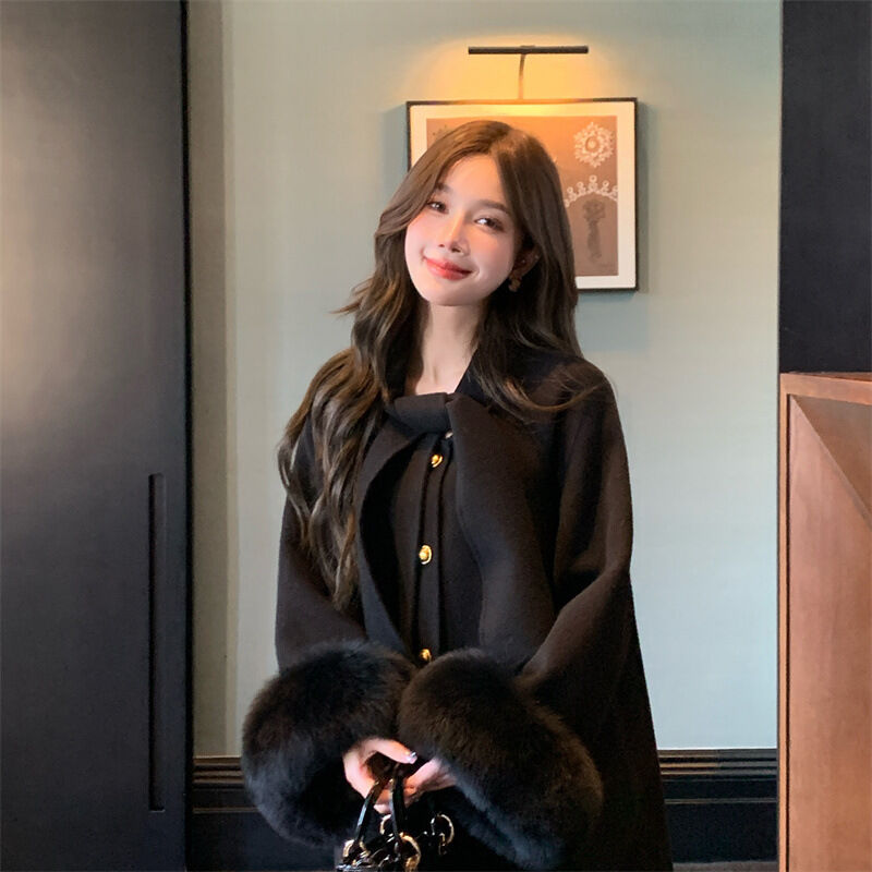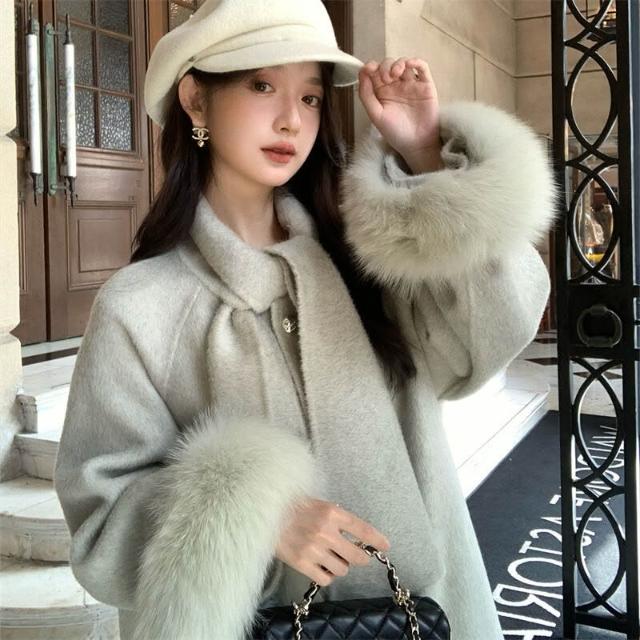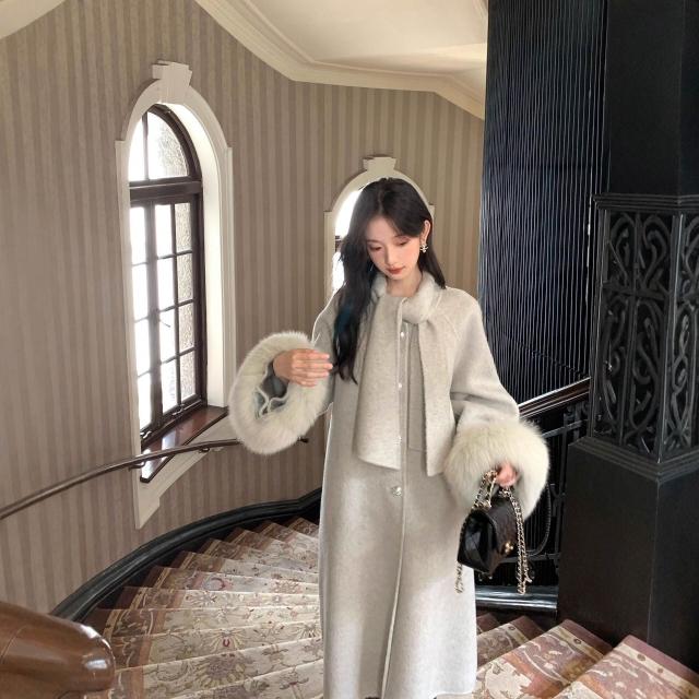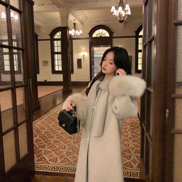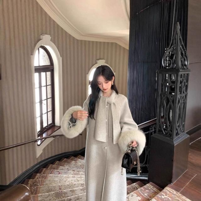 爆款🔥🔥 約會日新款溫柔千金狐貍毛雙面羊絨大衣女高級感羊毛呢中長款外套 (高級大衣 高級中長款大衣 羊絨寬鬆大衣 羊絨寬鬆外套)