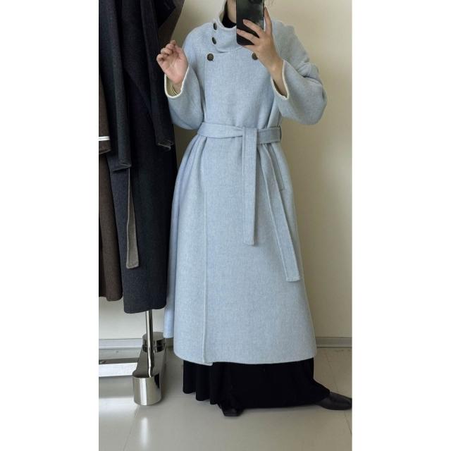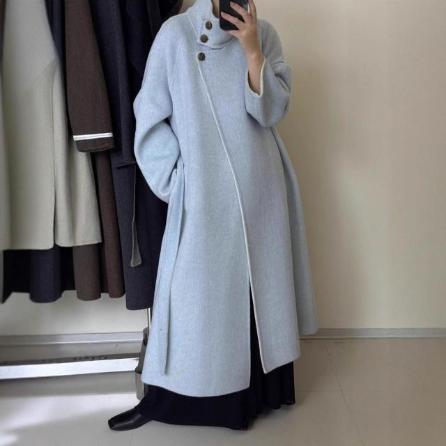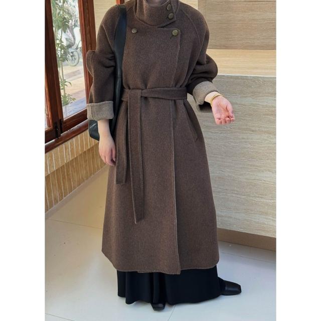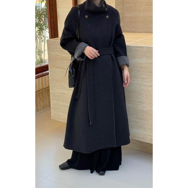 爆款🔥🔥 銅扣立領羊絨大衣女韓系高級感A版寬松長款加厚雙面羊毛外套 (高級大衣 高級中長款大衣 羊絨寬鬆大衣 羊絨寬鬆外套)