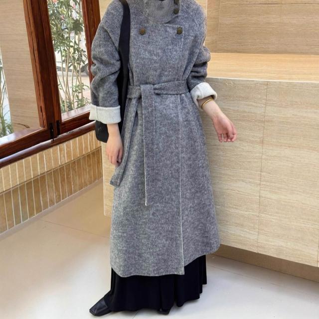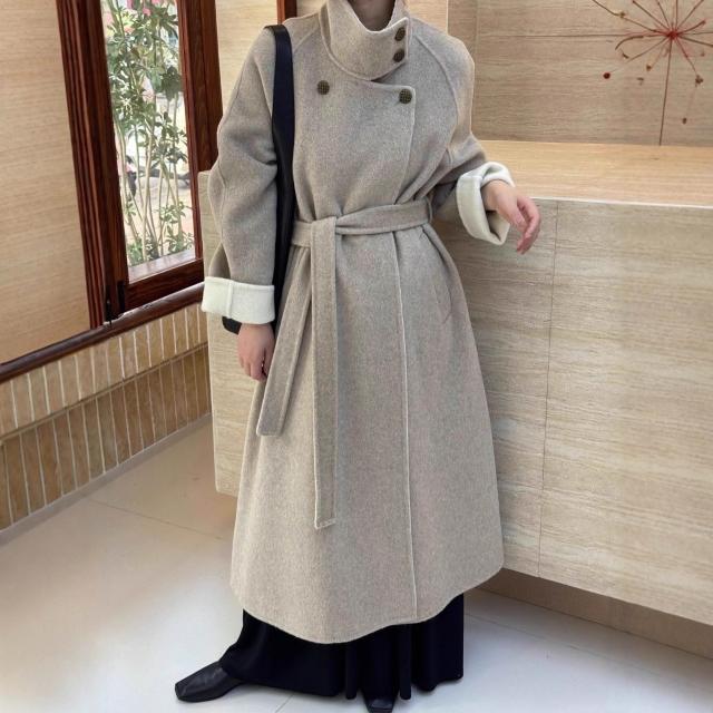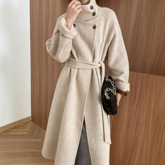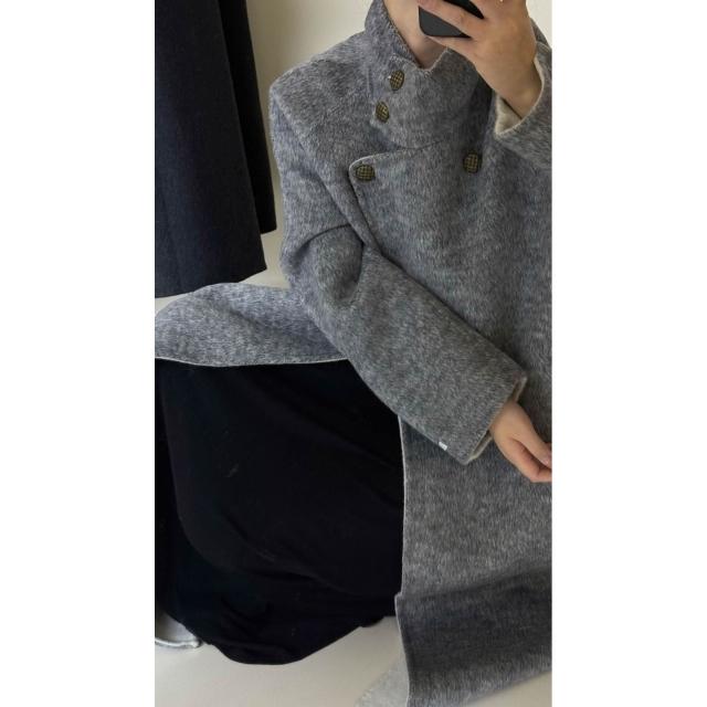 爆款🔥🔥 銅扣立領羊絨大衣女韓系高級感A版寬松長款加厚雙面羊毛外套 (高級大衣 高級中長款大衣 羊絨寬鬆大衣 羊絨寬鬆外套)