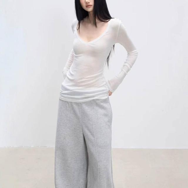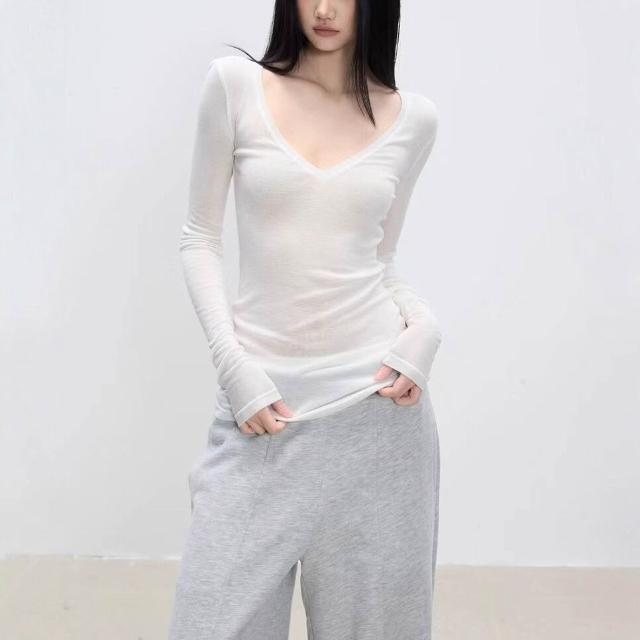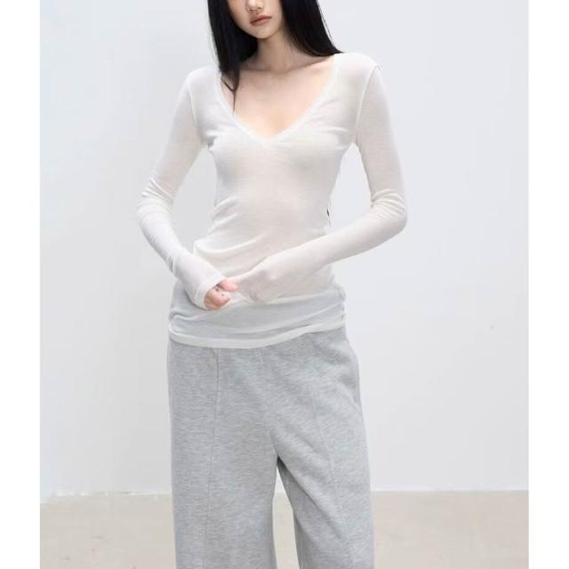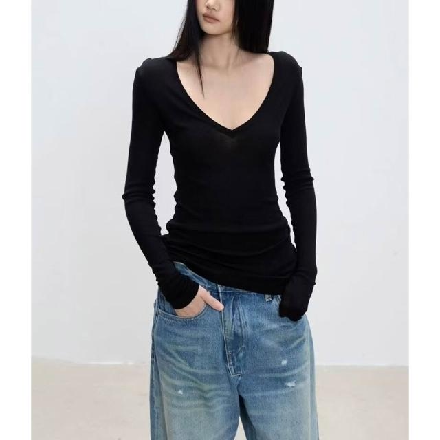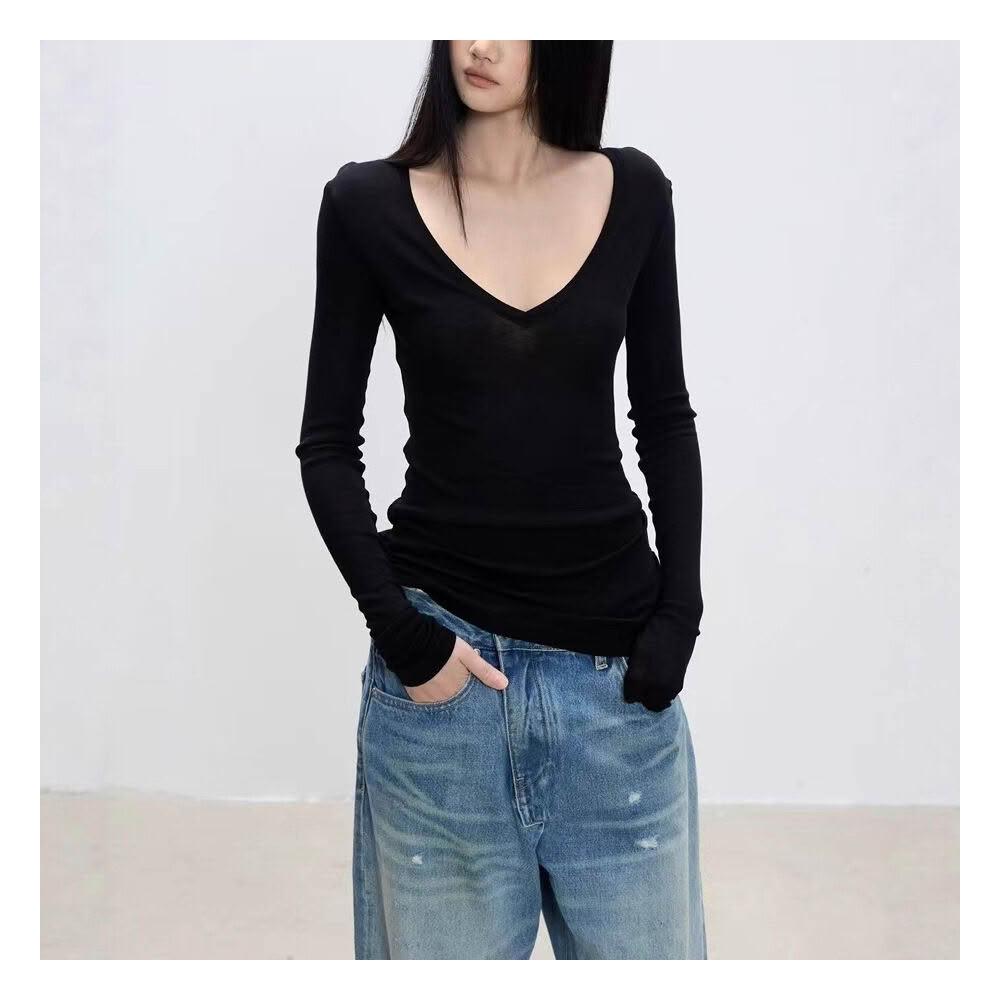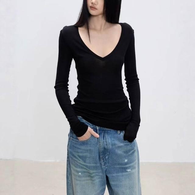 熱銷🔥 長袖t恤女秋季新款顯瘦收腰V領打底衫女內搭上衣女裝 (長袖t恤 打底衫 女上衣 打底t恤)