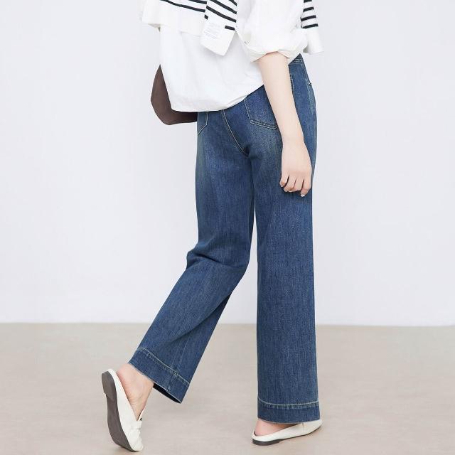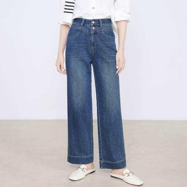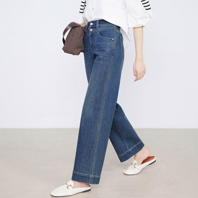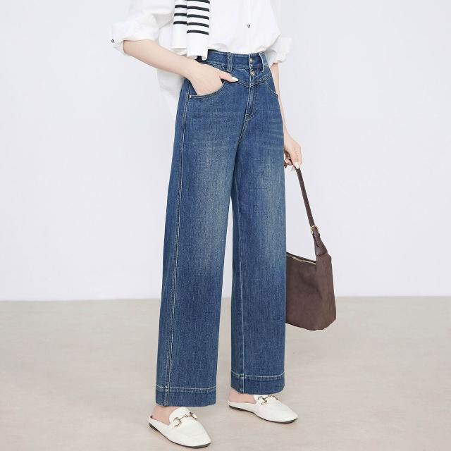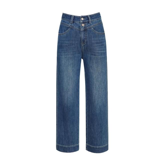 熱銷🔥 萊賽爾九分直筒褲女春秋新款雙扣高腰顯瘦彈力闊腿牛仔褲 (女長褲 阔腿裤 百搭休閒長褲)