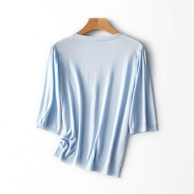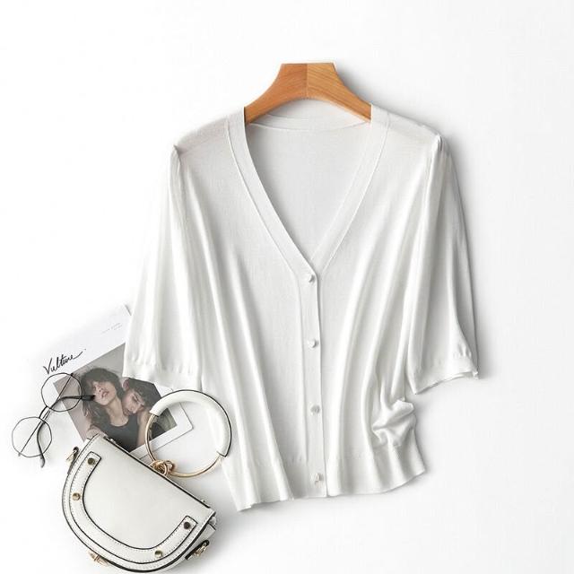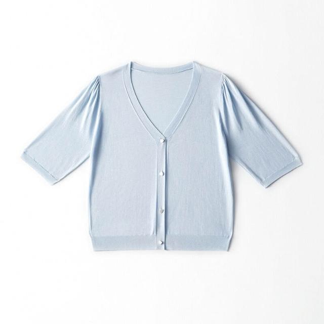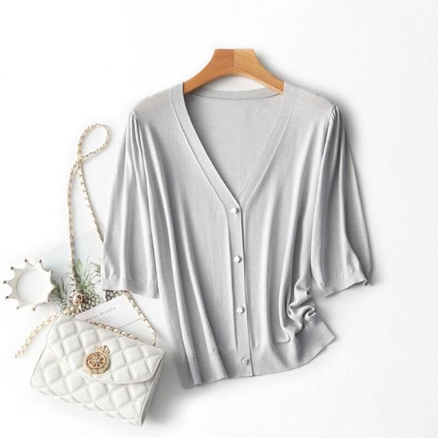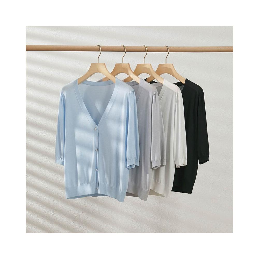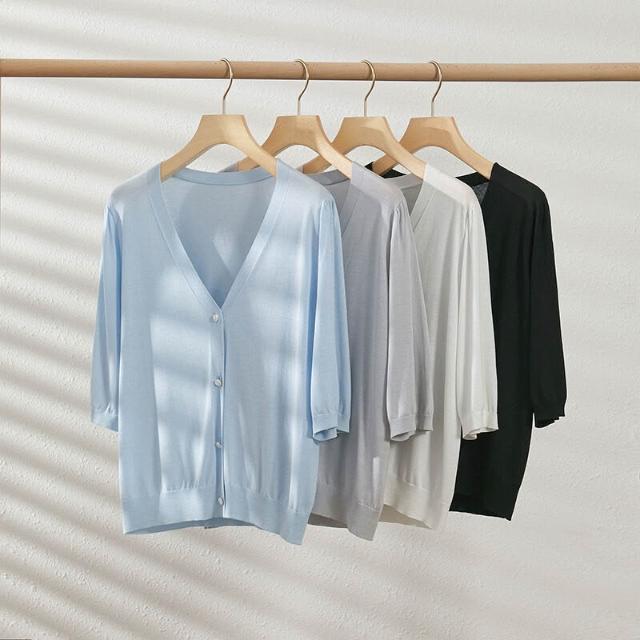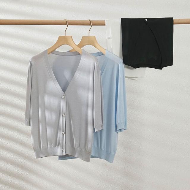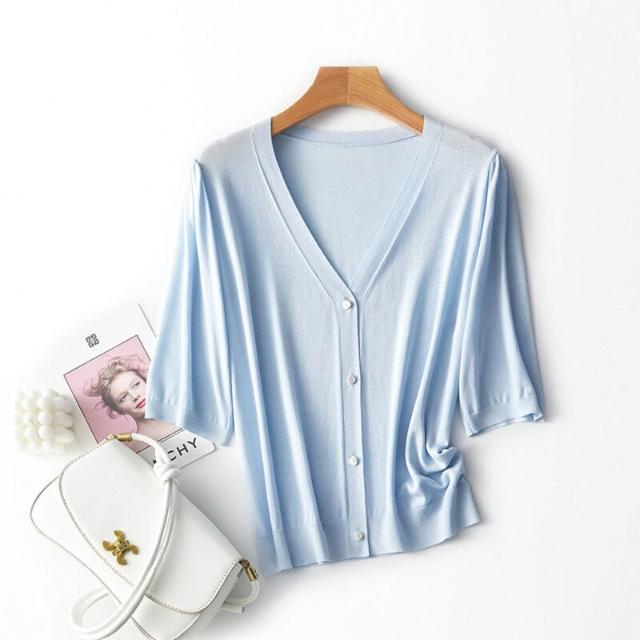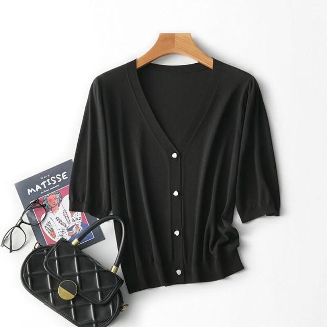 熱銷🔥🔥 V領針織開衫女夏季新款寬松顯瘦五分袖薄款通勤上衣 (輕薄針織衫 時尚女裝上衣 針織上衣 精緻上衣)