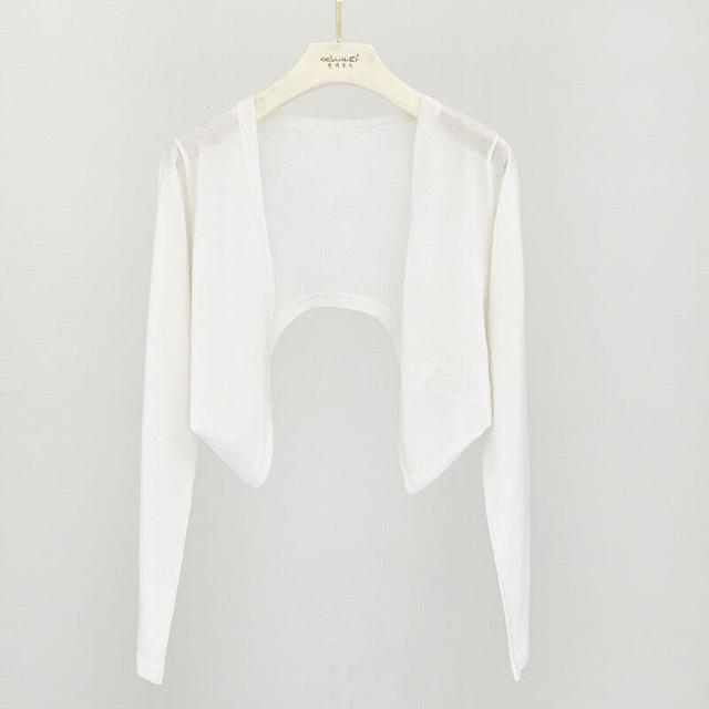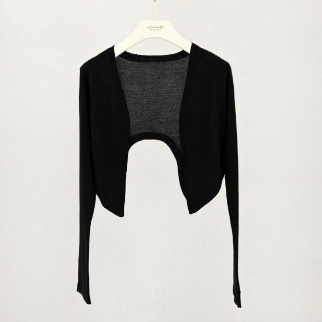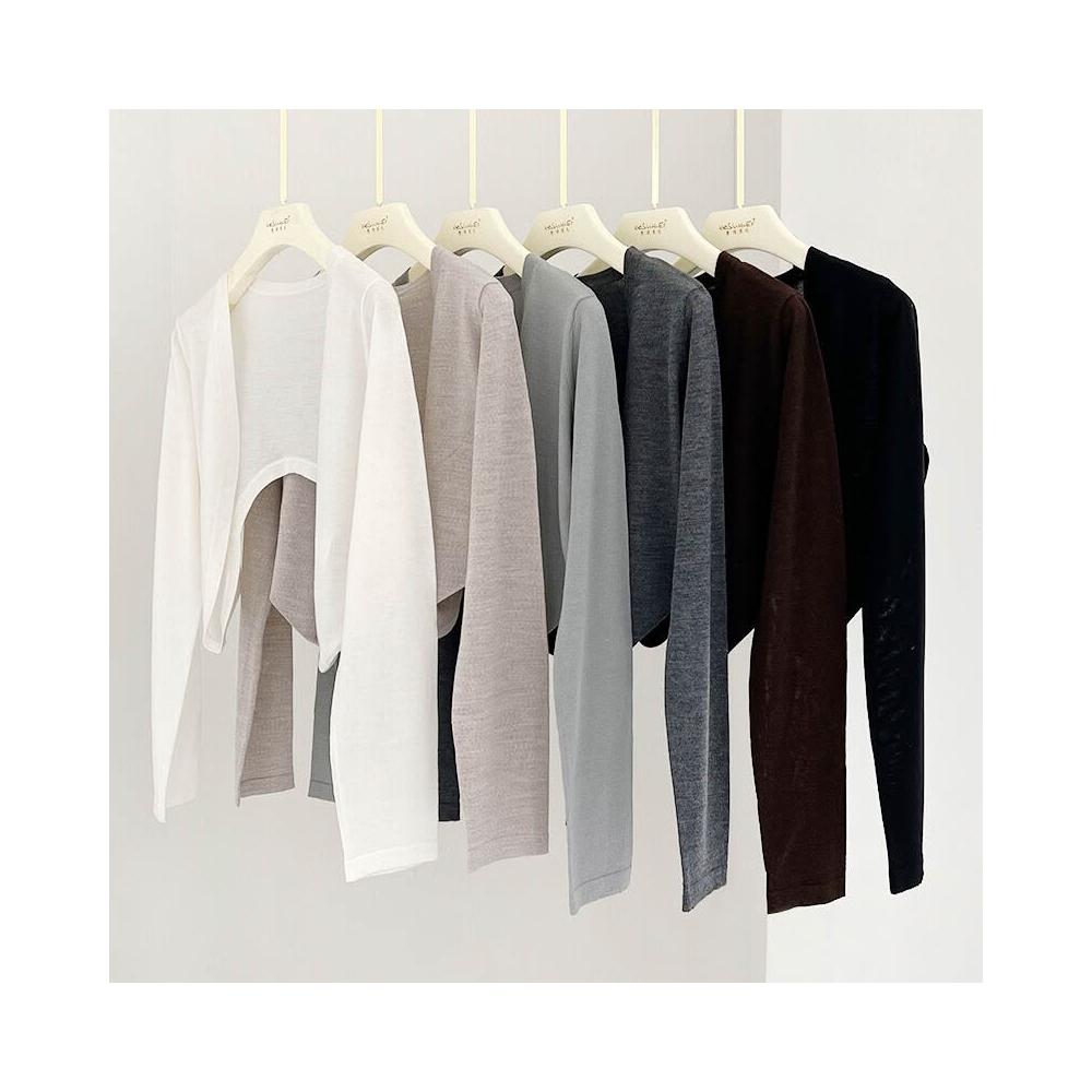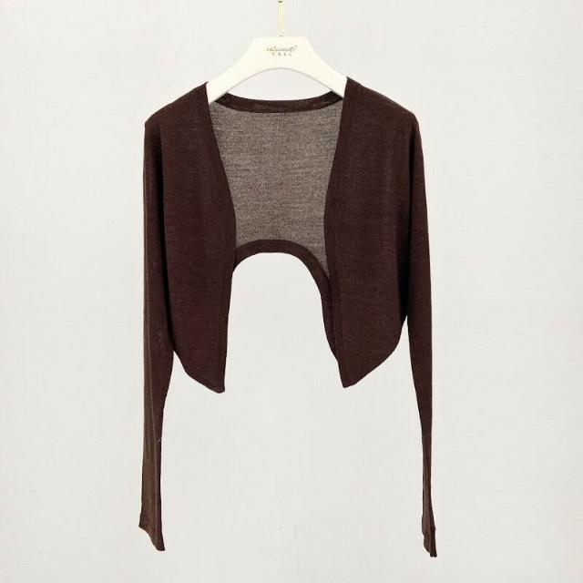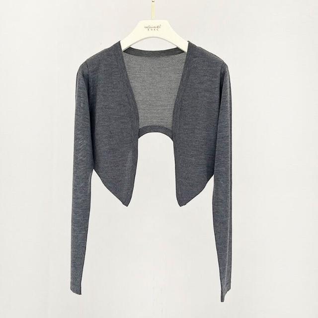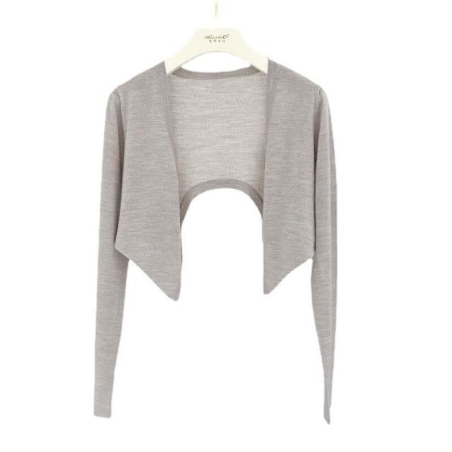 熱銷🔥🔥 防曬桑蠶絲開衫薄款女士夏氣質細羊毛針織長袖短款空調衫披肩坎肩 (輕薄針織衫 時尚女裝上衣 針織上衣 精緻上衣)