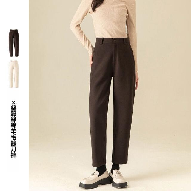 熱銷🔥 桑蠶絲綿羊毛鐮刀褲冬季新款顯瘦梨型身材小個子休閑褲 (女長褲 阔腿裤 百搭休閒長褲)