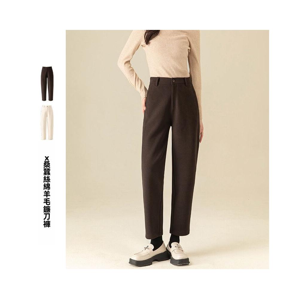 熱銷🔥 桑蠶絲綿羊毛鐮刀褲冬季新款顯瘦梨型身材小個子休閑褲 (女長褲 阔腿裤 百搭休閒長褲)