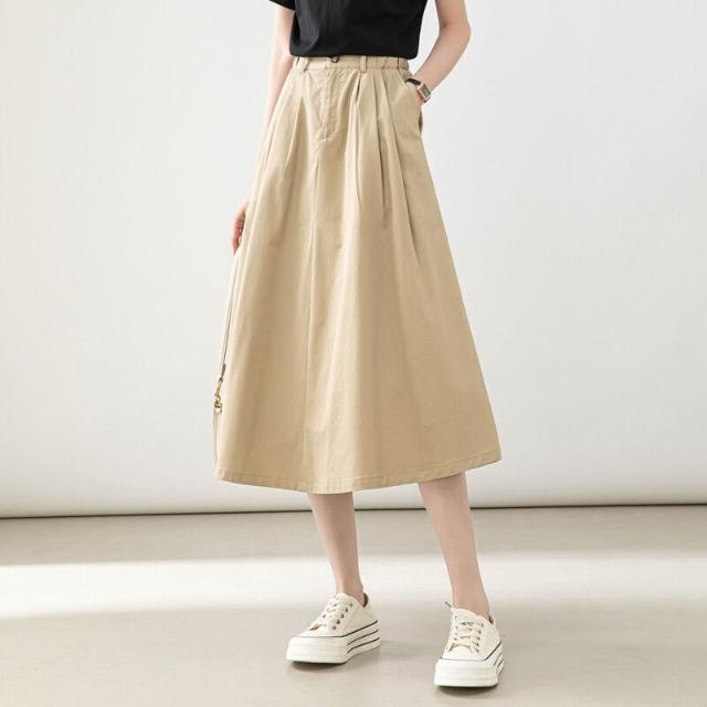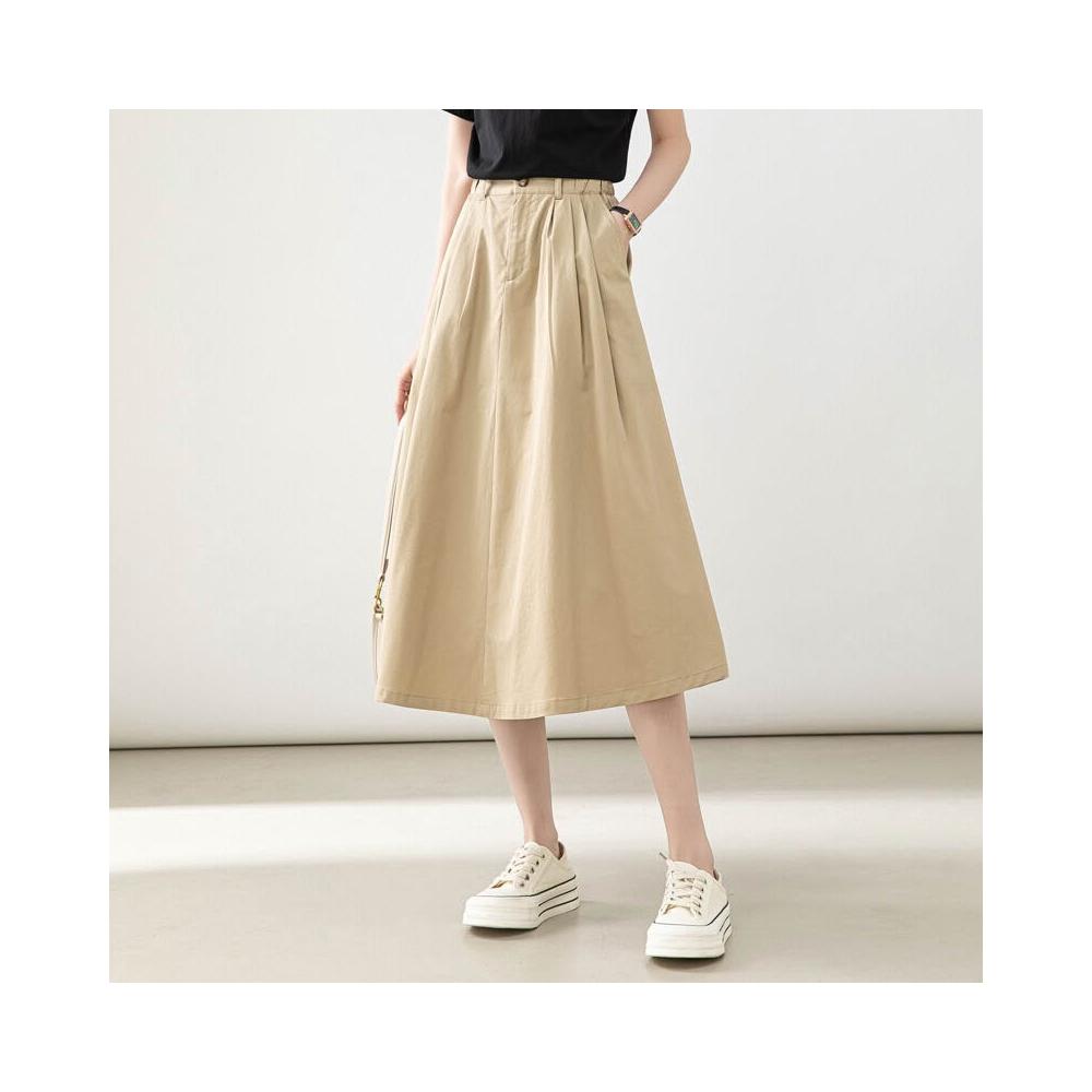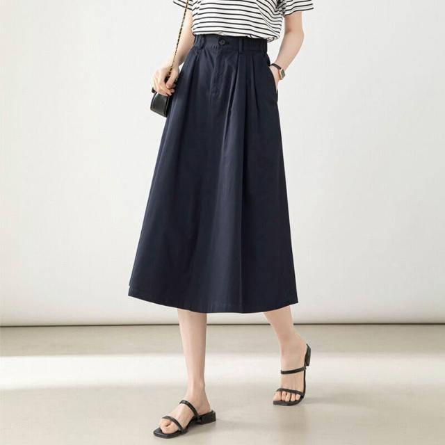 短袖長裙 緞面連衣裙 無袖內搭長裙 半身裙女春季高腰顯瘦中長款a字裙天絲棉質休閑大擺傘裙