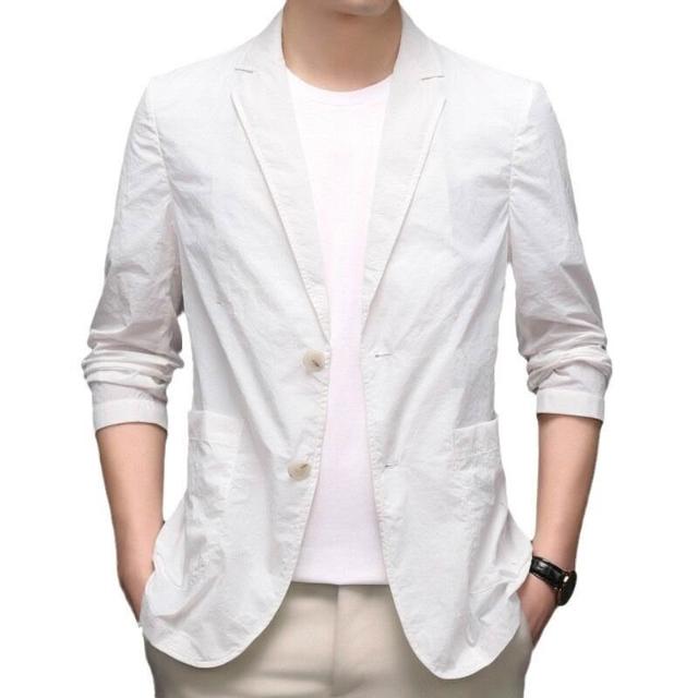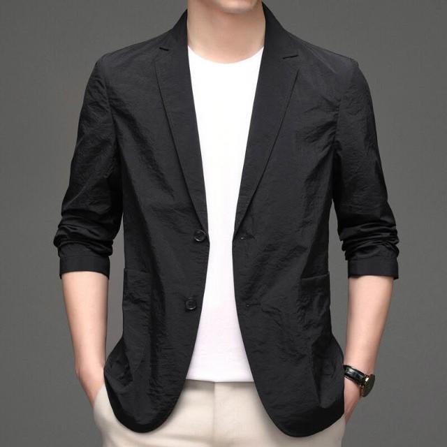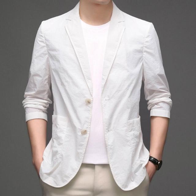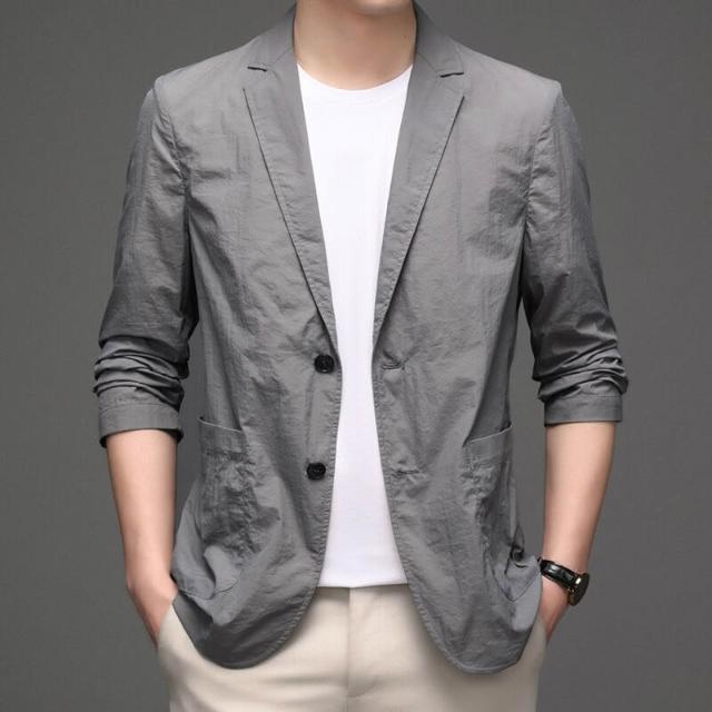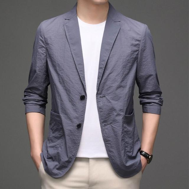 牛仔外套 休閑西裝 松薄外套 男裝小西裝商務薄夏季防曬衣中年男士外套薄款單西服上衣