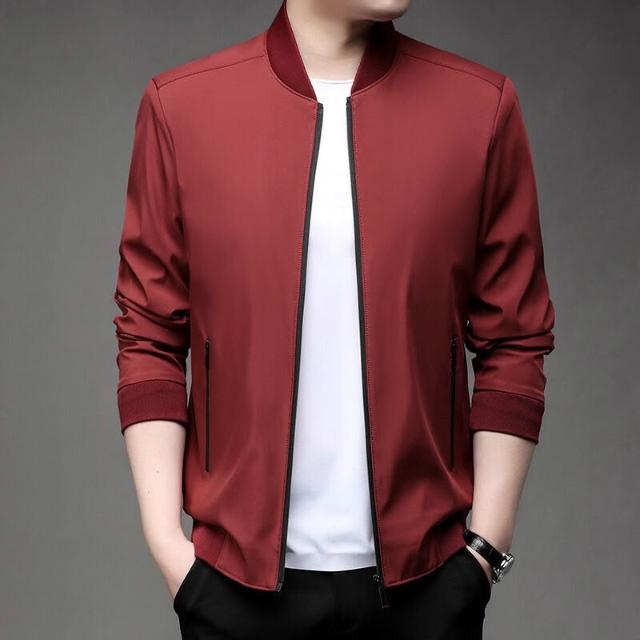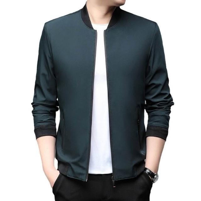 牛仔外套 休閑西裝 松薄外套 春秋季新款中年男士棒球領夾克休閑簡約純色薄裝外套夾克男