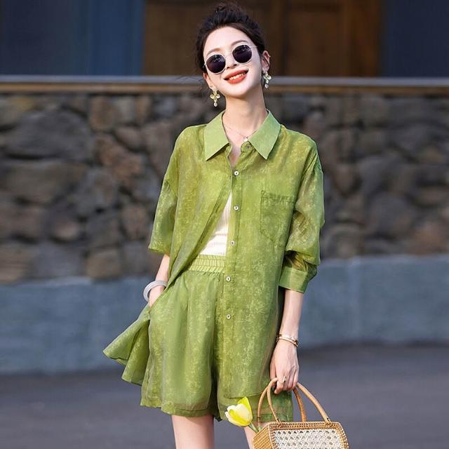防曬上衣 小立領襯衫 雪紡襯衣 輕薄天絲防曬衣套裝女夏季新款時尚防曬襯衫