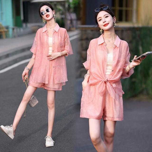 防曬上衣 小立領襯衫 雪紡襯衣 輕薄天絲防曬衣套裝女夏季新款時尚防曬襯衫