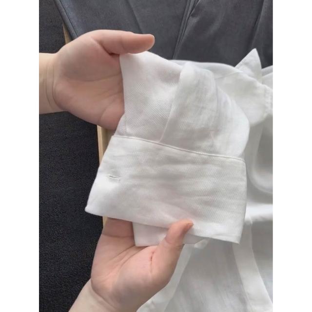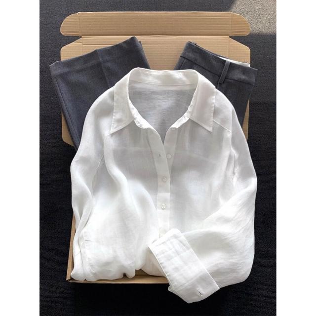 防曬上衣 小立領襯衫 雪紡襯衣 白色Polo領亞麻防曬襯衫女夏季輕薄透氣寬松休閑棉麻襯衣上衣