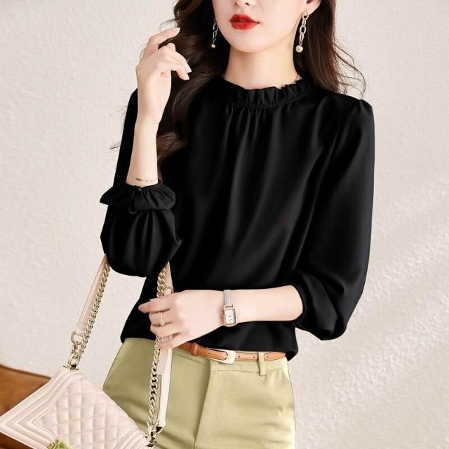 防曬上衣 小立領襯衫 雪紡襯衣 品牌重磅真絲襯衫高品質長袖小衫設計感時尚上衣高端女士氣質襯衣